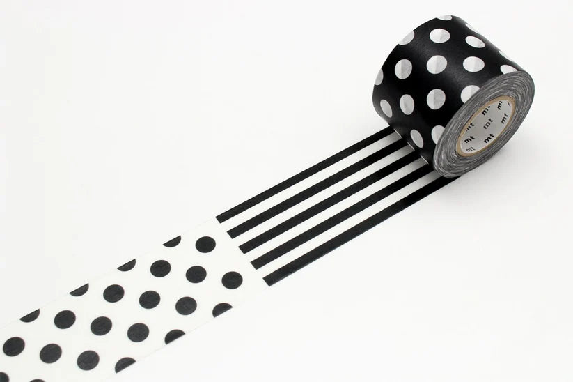 Monochrome can be marvellous: mt PACK Washi Tape in a black and white dotted-and-lined pattern delivers secure parcel sealing with graphic style. Made in Japan by mt—the original inventors of washi tape—this version swaps delicate craft tape removability for permanent sticking power. The result? Extra-strong adhesive in a smart, modern design that looks as good on parcels as it does in your stationery drawer.