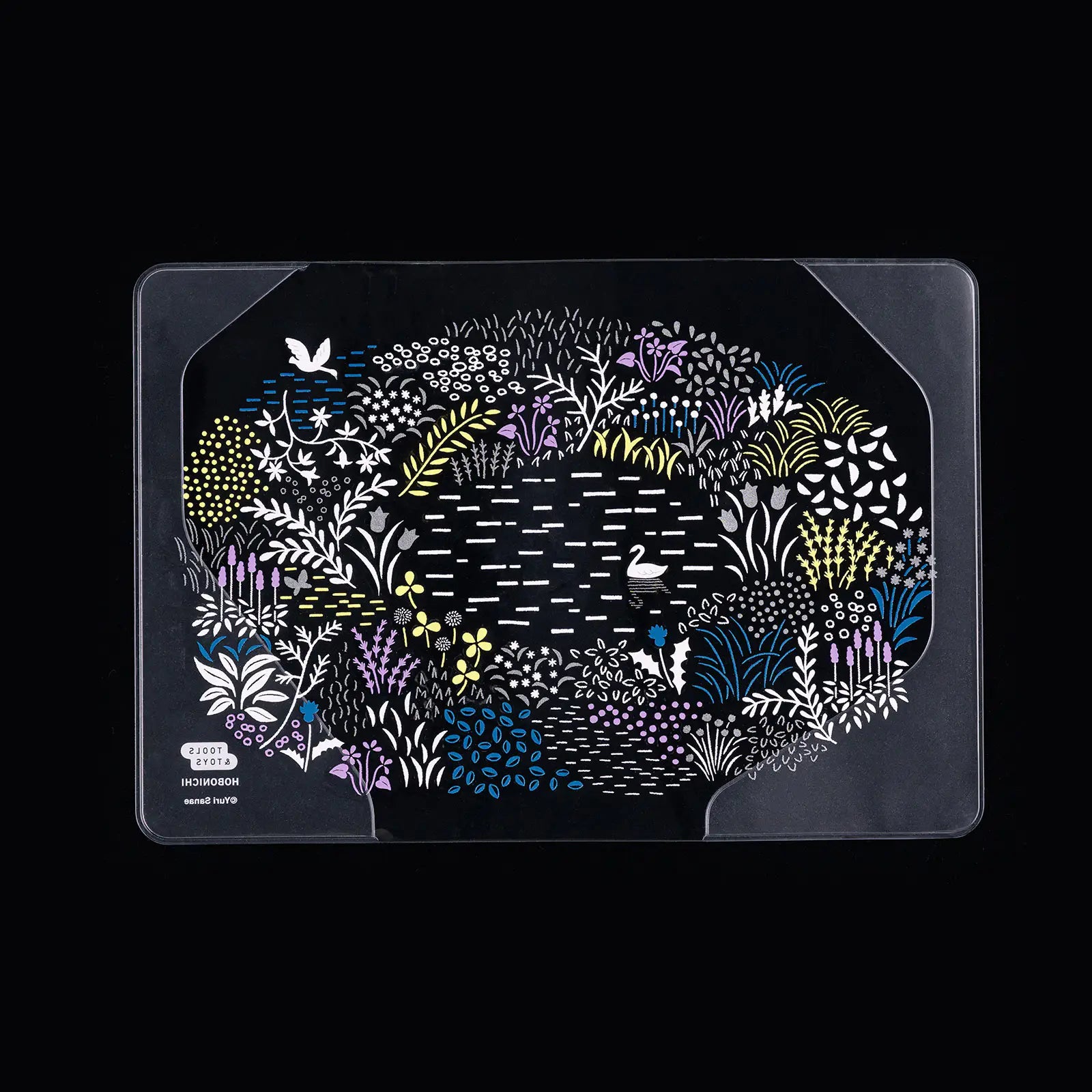 Forest Lake is designed by graphic designer and illustrator Yuri Sanae. Inspired by the quiet time spent reflecting with the techo, she illustrated this lake, surrounded by countless flowers and plants in a flourishing forest.