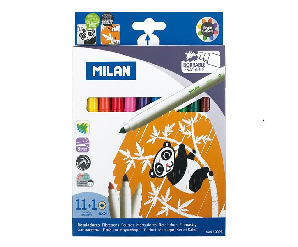 Colour boldly, correct discreetly. These Milan Erasable Fibrepens offer the best of both artistic worlds: eleven brilliant shades paired with one rather clever eraser pen. Each fibretip boasts a conical nib, nimble enough for fine-line doodling yet stout enough for sweeping colour fills. Should your creative muse take a wrong turn, simply erase and carry on—no drama, no mess. Made in Spain (yes, the land of Gaudí and great stationery), this set is a tidy solution for colourful minds with occasional second thoughts.