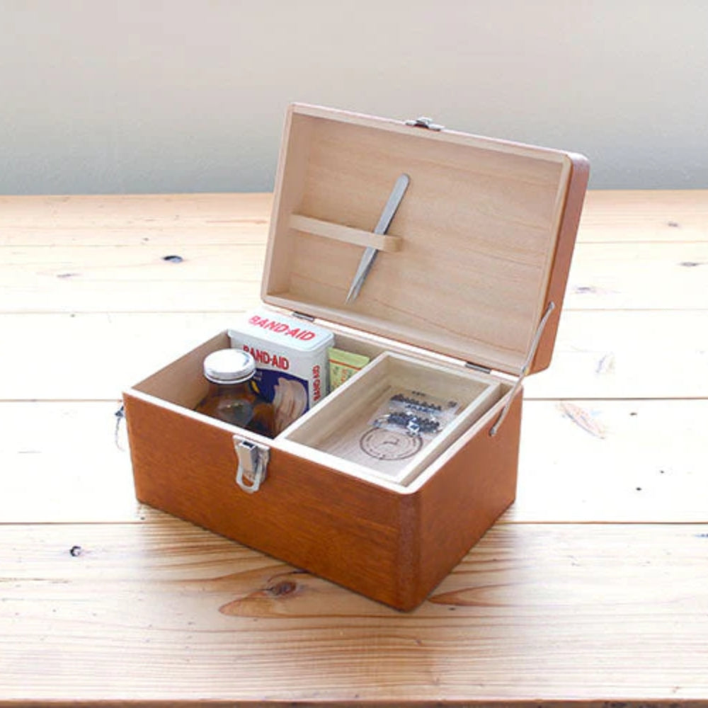 With its classic Kurashiki design, the Classiky Small First Aid Box brings a touch of old-fashioned charm to modern living. The soft clink of its metal fittings as you close it is at once nostalgic and faintly theatrical. Inside, you’ll find no fussy partitions – just open, adaptable space that expands or contracts with your ever-changing supply of plasters, ointments, and well-meant remedies. Made from hemlock and metal alone, it’s built to develop a rich patina over the years. The smallest in the Classiky first aid range, it features a removable tray for easy access and a handy storage section for small tools such as tweezers or scissors discreetly tucked into the lid.