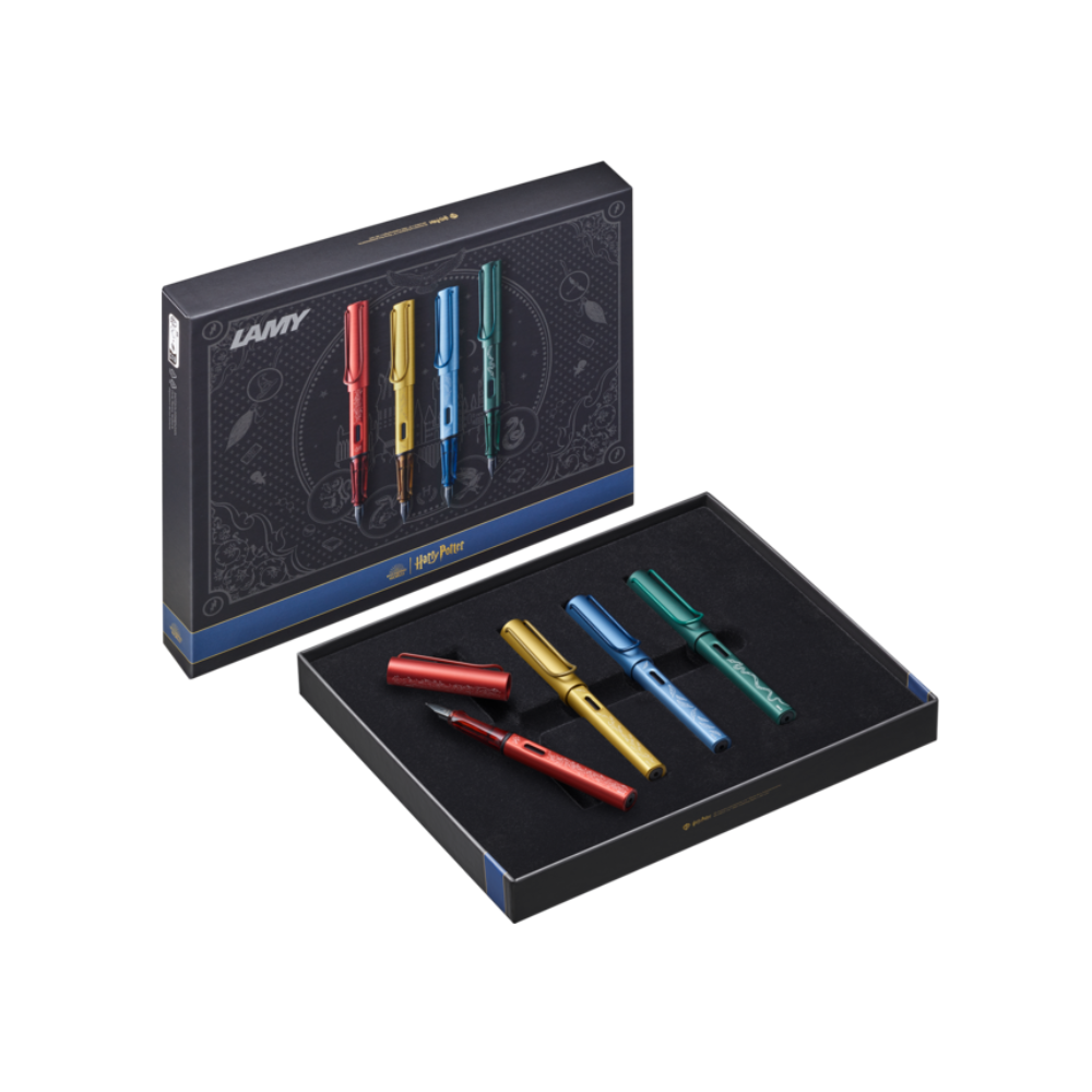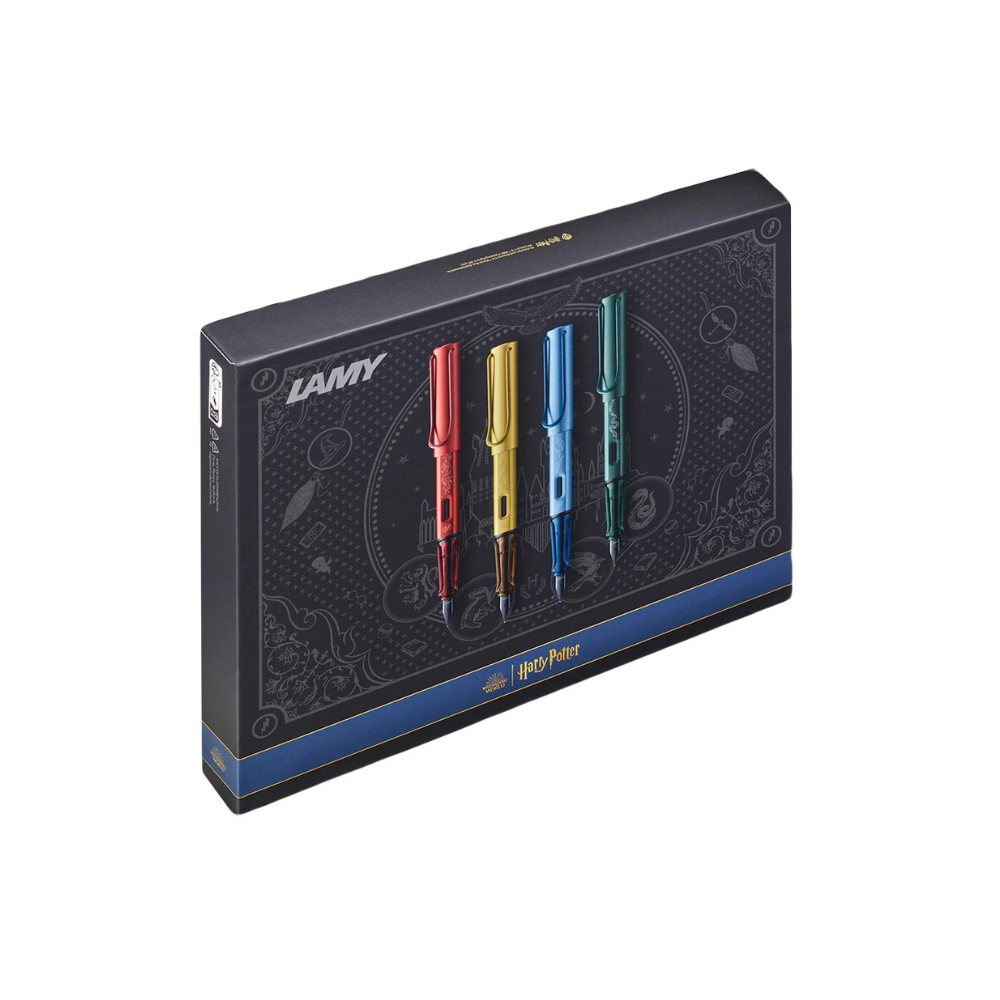 - Supplied Accessories: Includes four blue LAMY T10 ink cartridges and all four pens are presented in a Harry Potter themed gift box.