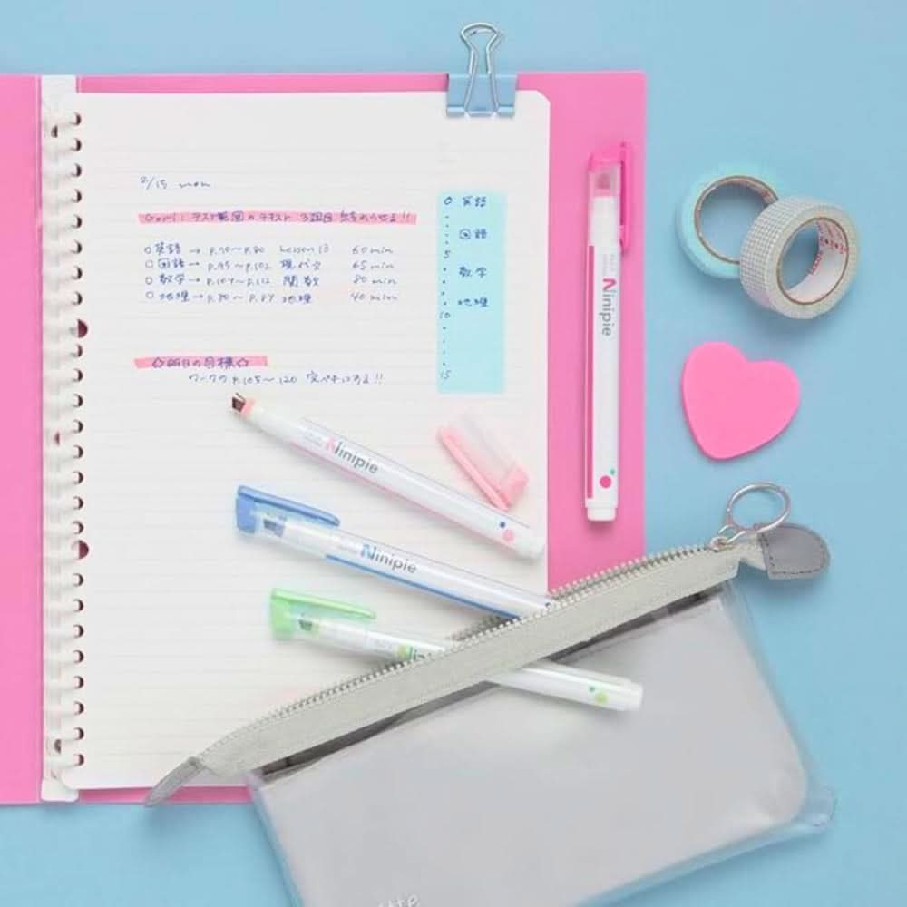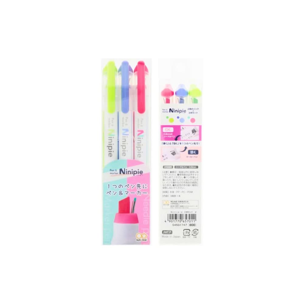 Sun-Star Ninipie 3 Colour Pack – Pastel Highlighter & Fineliner Pen Set