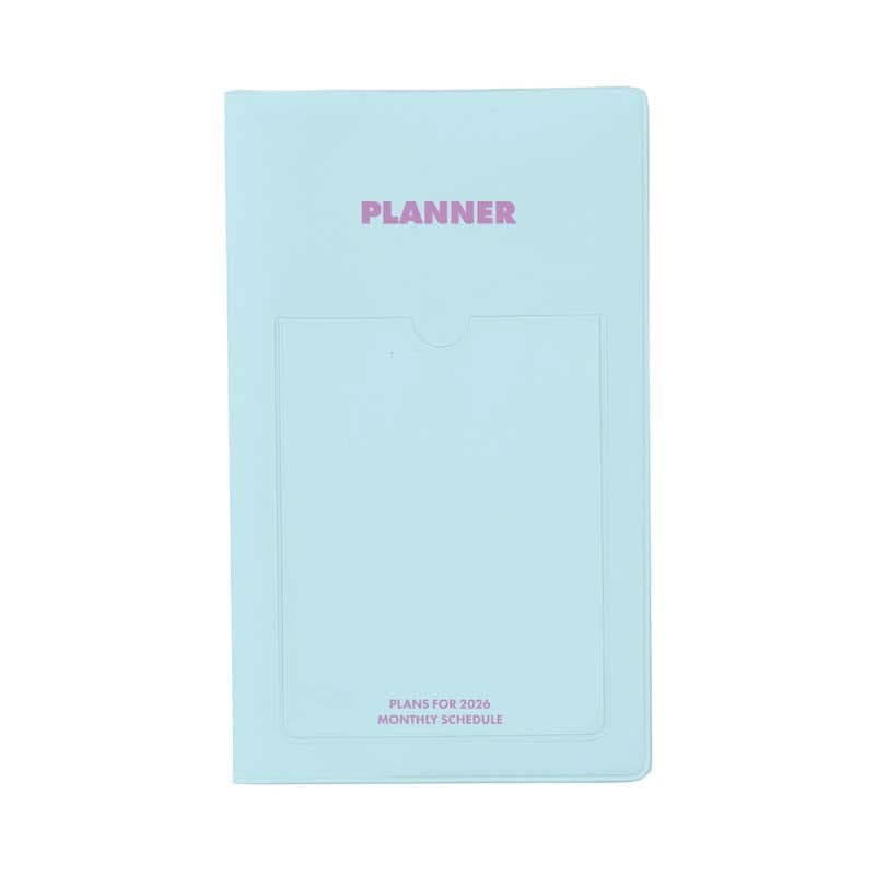 Each month is thoughtfully laid out across two fountain pen friendly pages, with a tidy vertical column on the left-hand side for jotting down reminders, lists, or gentle warnings to your future self. A small transparent pocket on the front cover invites you to slip in a photo, card, or token—just the thing to make your diary feel truly yours.