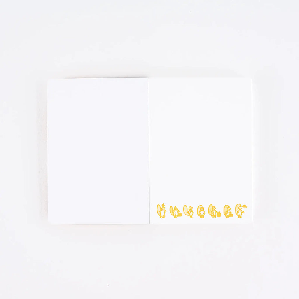 This A6 notepad has 155 pages. The paper inside is blank except for a lightly printed illustration, and the pages are glued in instead of sewn, making them very easy to rip out for shopping lists or passing along messages.