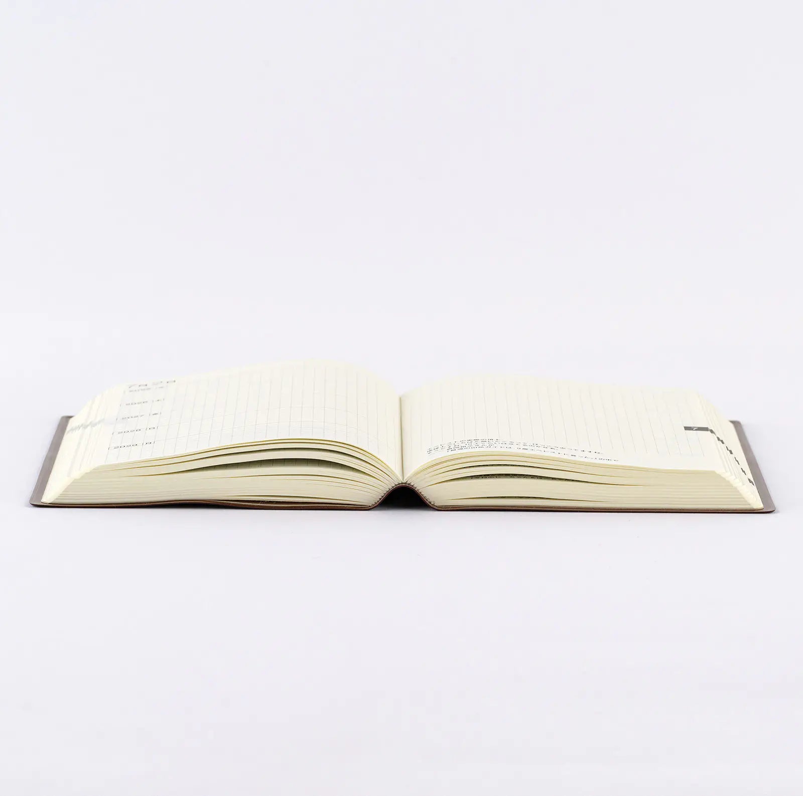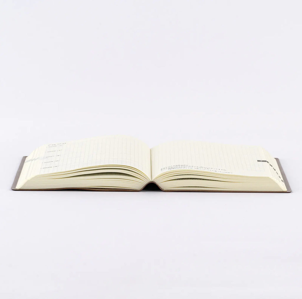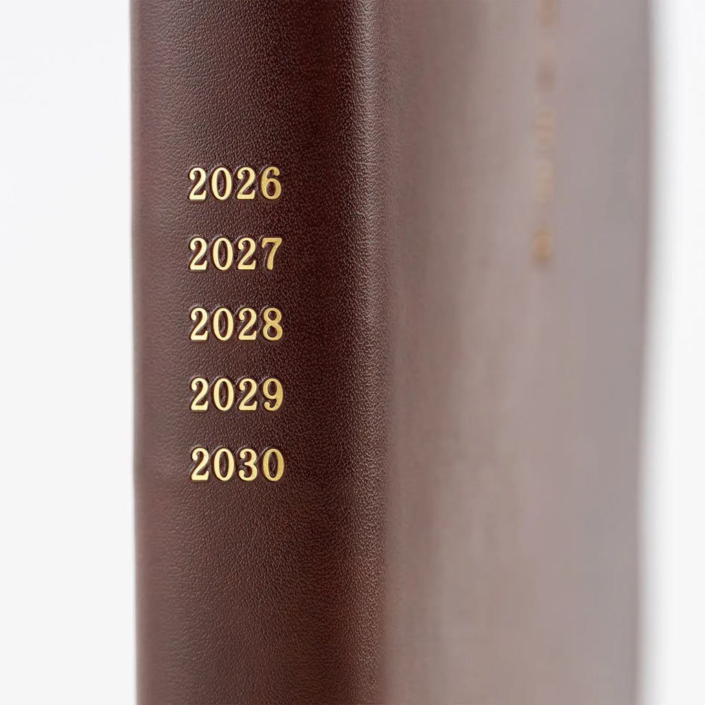 This A6-size book has pages dated across a 5-year span. The textured cover is a calming shade of brown with the years foil-pressed in gold, and the book contains a dark brown bookmark for a complete look that works well without adding an additional cover.