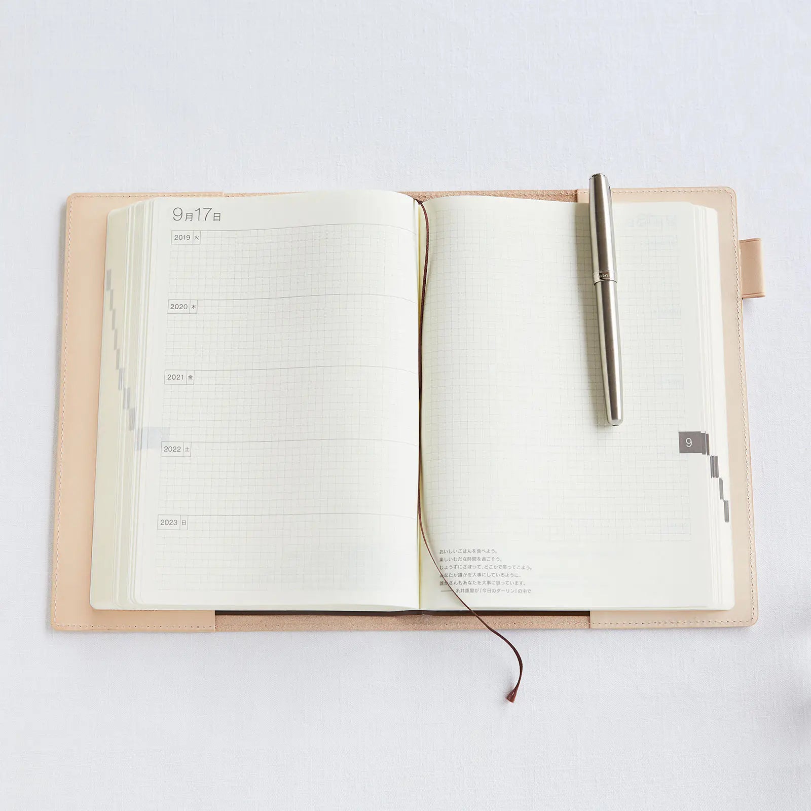 Specially made as the cover of the Large Hobonichi 5-Year Techo, Natural is made of tanned cow leather that changes color over time as the leather ages.