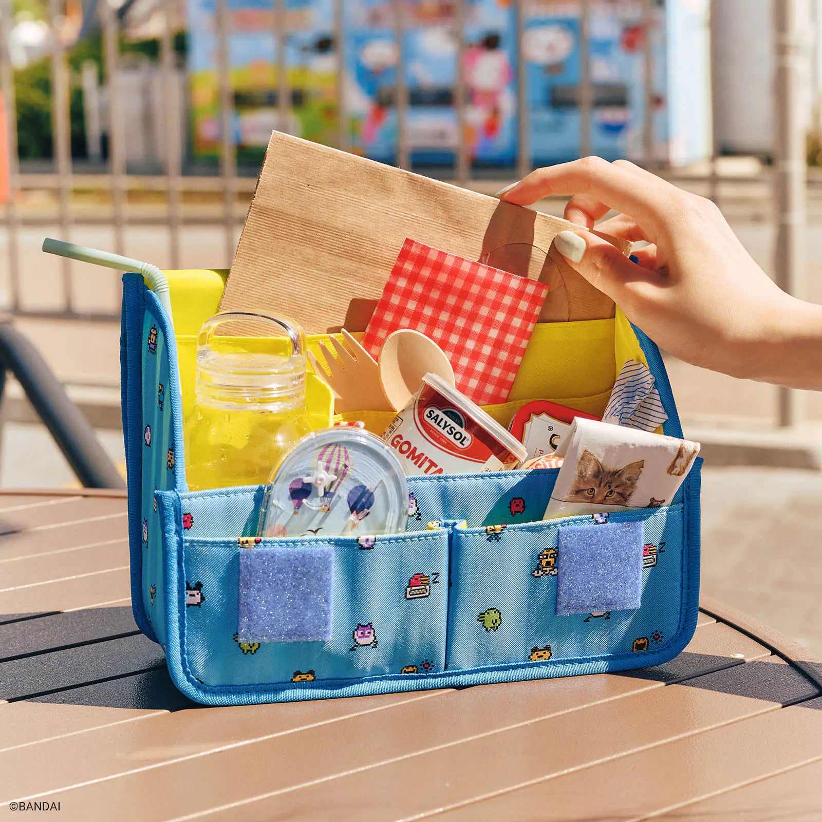 Tamagotchi: Our Tamagotchi is born from a collaboration with the digital handheld pet Tamagotchi, which took the world by storm after its 1996 release. The material used is a necktie fabric which feels smooth to the touch and has a luxurious shine. This design features Tamagotchis from the original Tamagotchi and New Species Discovered!! Tamagotchi series, woven directly into the fabric. They each strike their own unique poses and simply looking at them stirs the imagination, making it feel like they might just start moving their bodies.