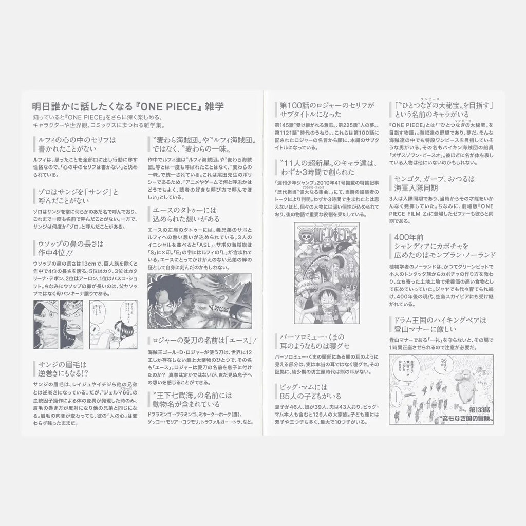 A collection of trivia about the One Piece characters, world-building, and the manga itself—created together with Owa D. Takashi and Nosuke Kaisendon, the MCs of the official One Piece YouTube program "Nakama ga Iru yo Tube!!!!"