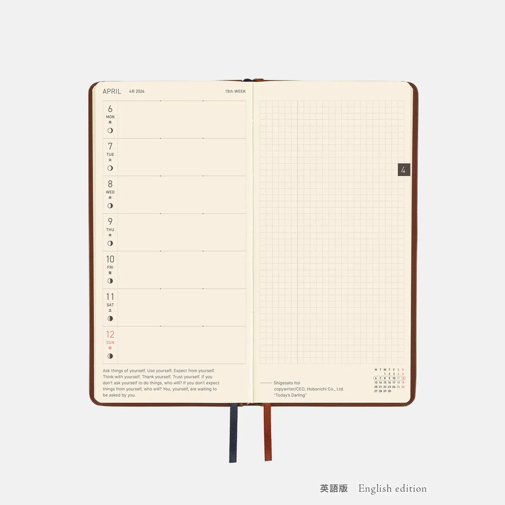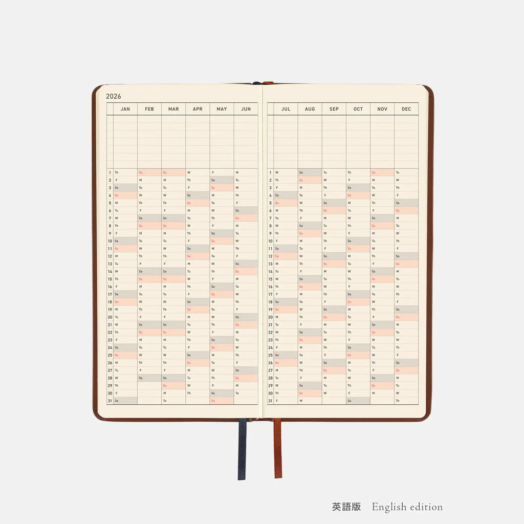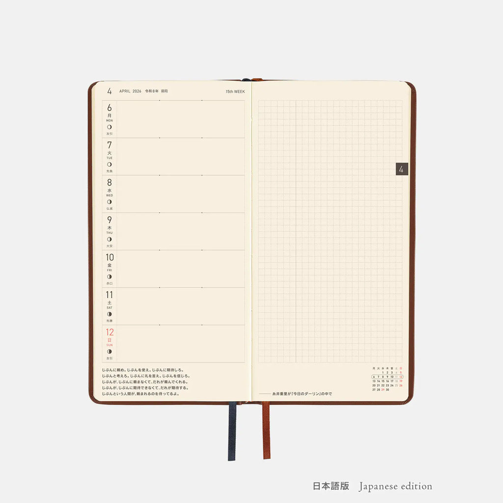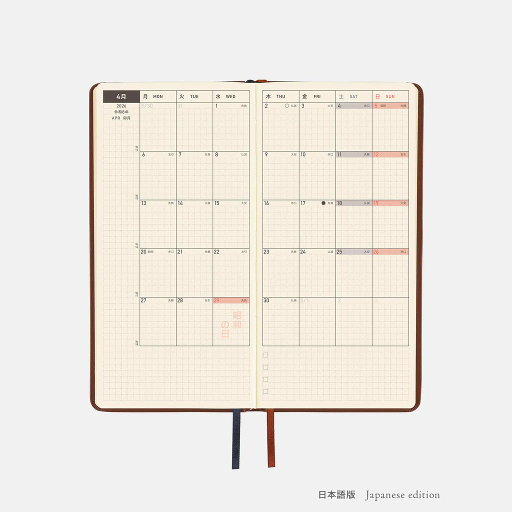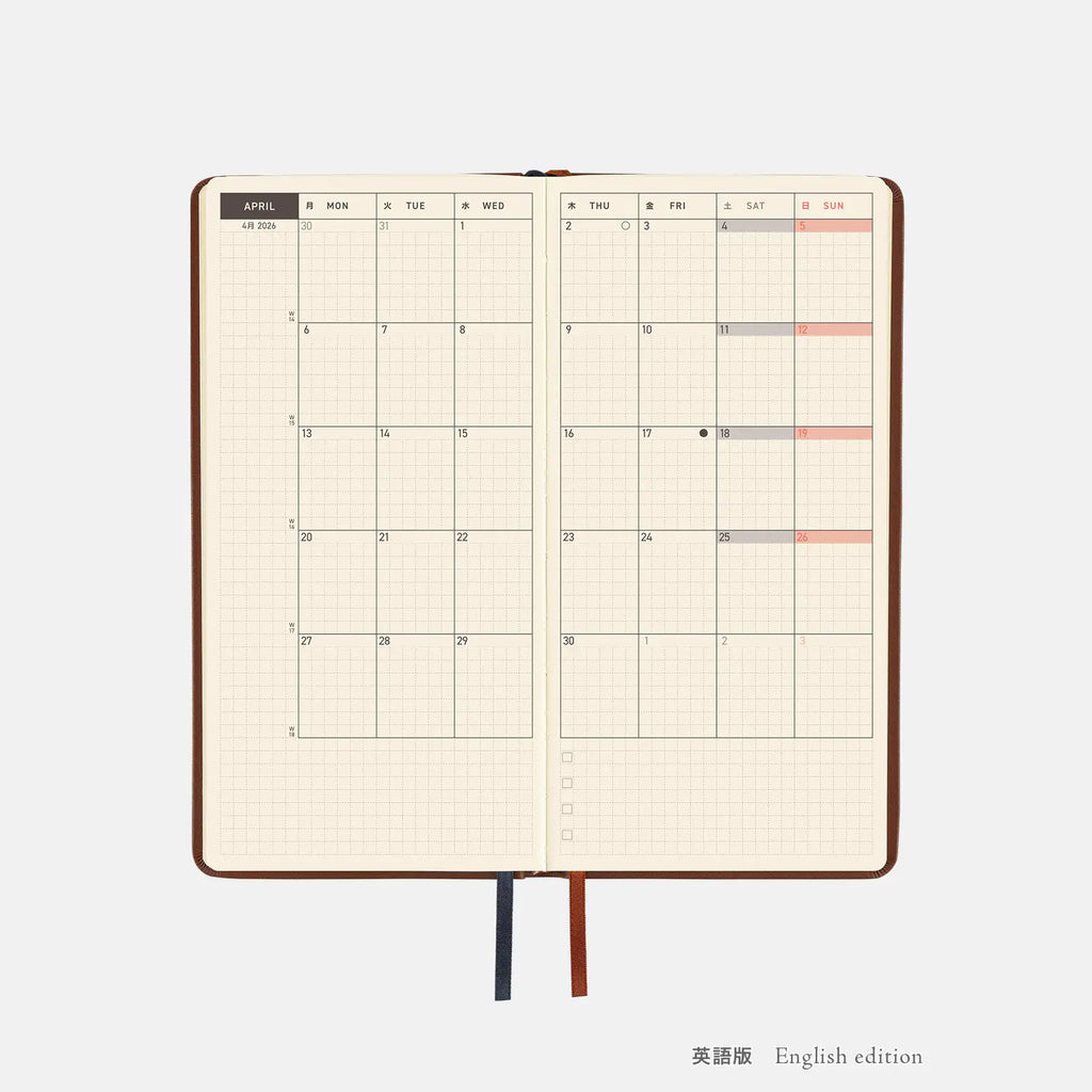 Hobonichi 2026 Weeks: Leather - Wine Brown