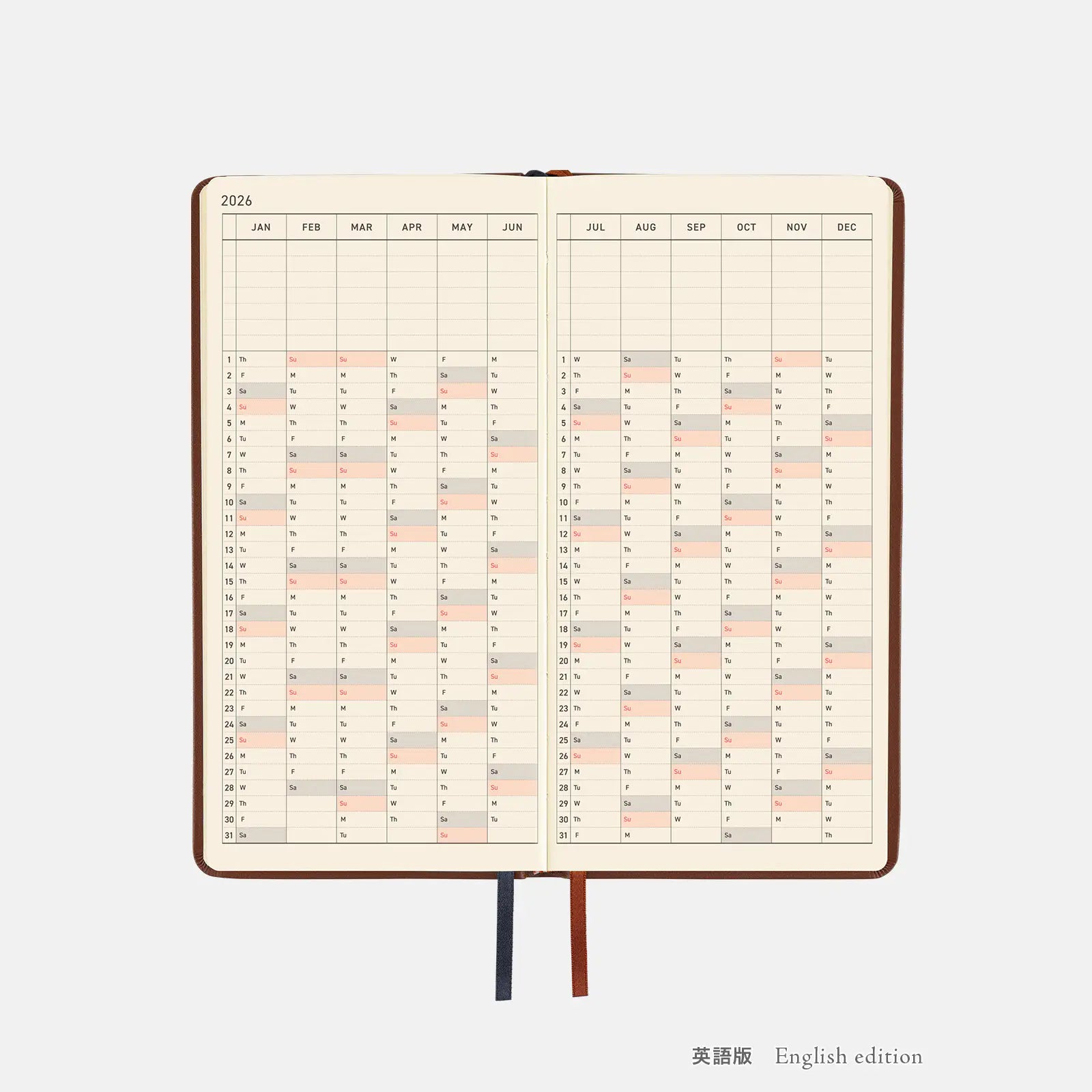 The year 2026 is foil-pressed in a matte gold onto the cover, giving off a demure glint.