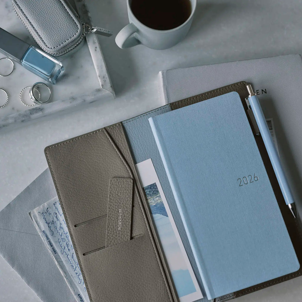 Hobonichi 2026 Weeks Planner Cover: Leather - Taut (Gray & Light Blue)