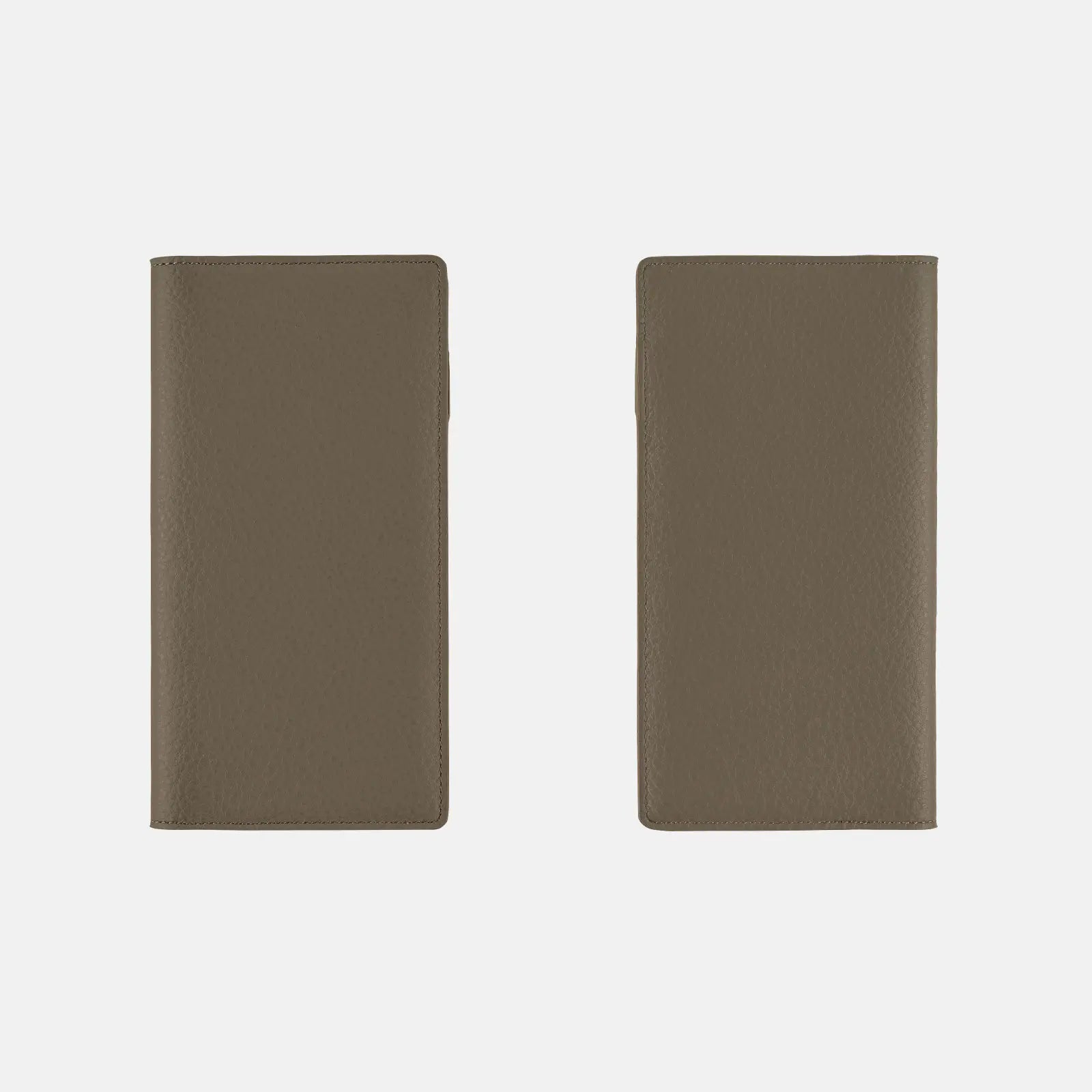 The front of the cover is in a warm gray, while the back is in a cool-toned light blue. A specialized process was used to create this dual-tone on one single piece of leather. The unique sleekness of the leather makes it soft to the touch, and thanks to its finely grained texture, scuff marks will be less visible.