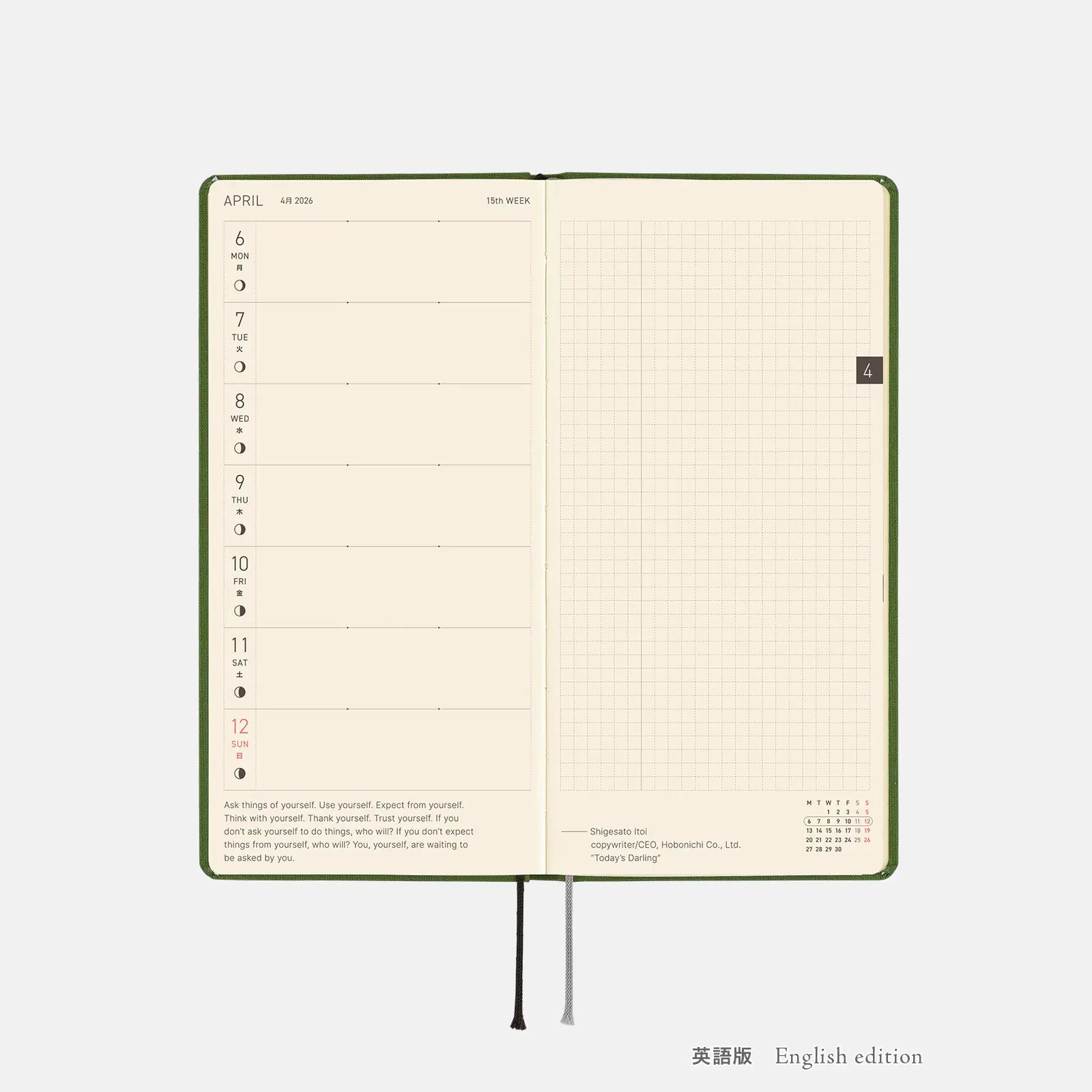 Hobonichi 2026 Weeks Mega: Colors - Antique Green