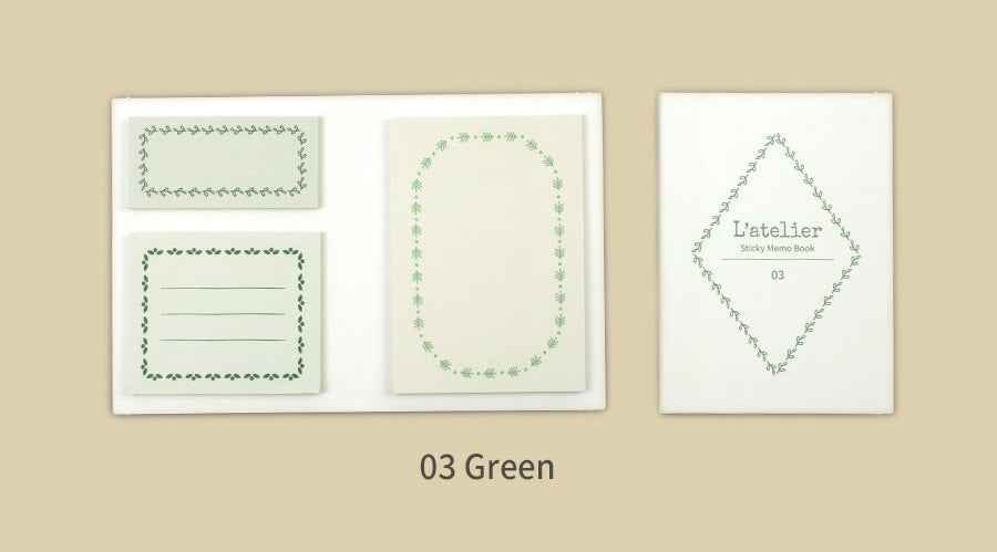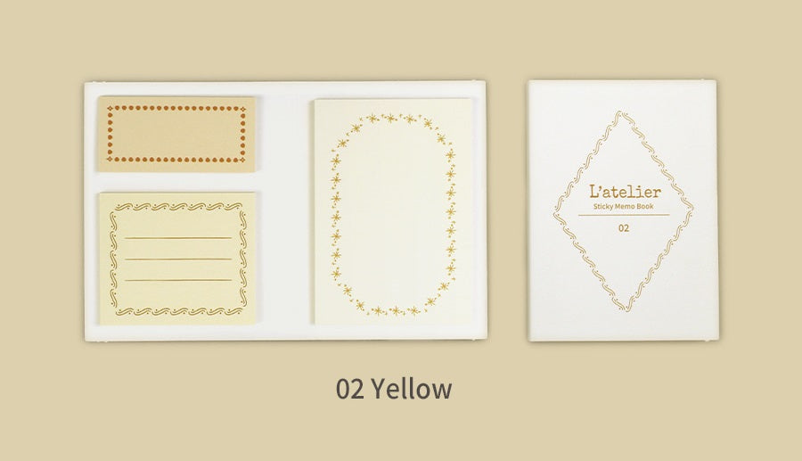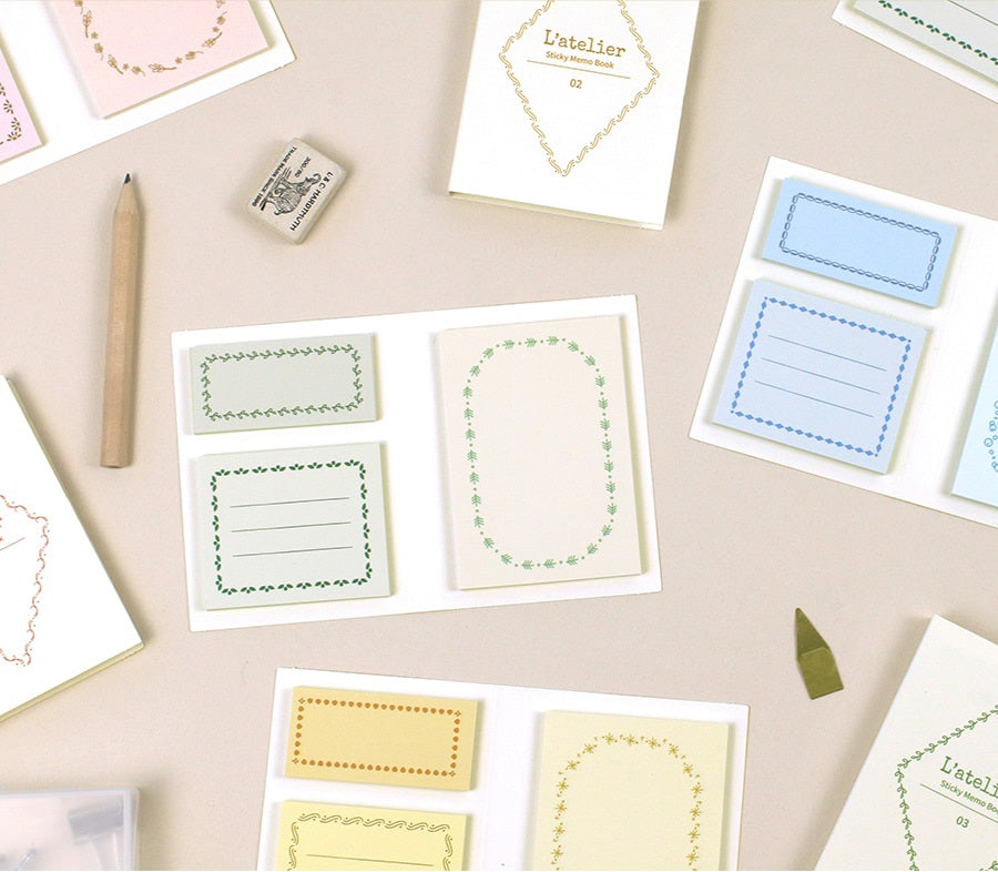 Paperian L'atelier Sticky Memo Books are full of sticky notes with classic and detailed borders. Each book has 3 designs and a generous 30 sheets of each size. Available in four subtle but beautiful colours: yellow, pink, green or blue. Perfect for adorning your diaries, planners and notebooks.