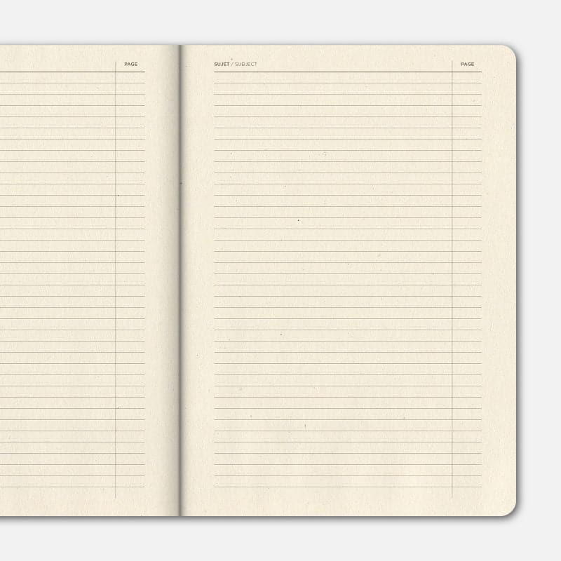 Papier Tigre Stuparo Notebook. Write, draw and brag at the office and at home with this awesome notebook made in France on recycled papers. Custom the inside numbered pages with the useful summary pages: create the perfect travel diary, a meticulous cookbook, or even a well-organized work or creative journal.