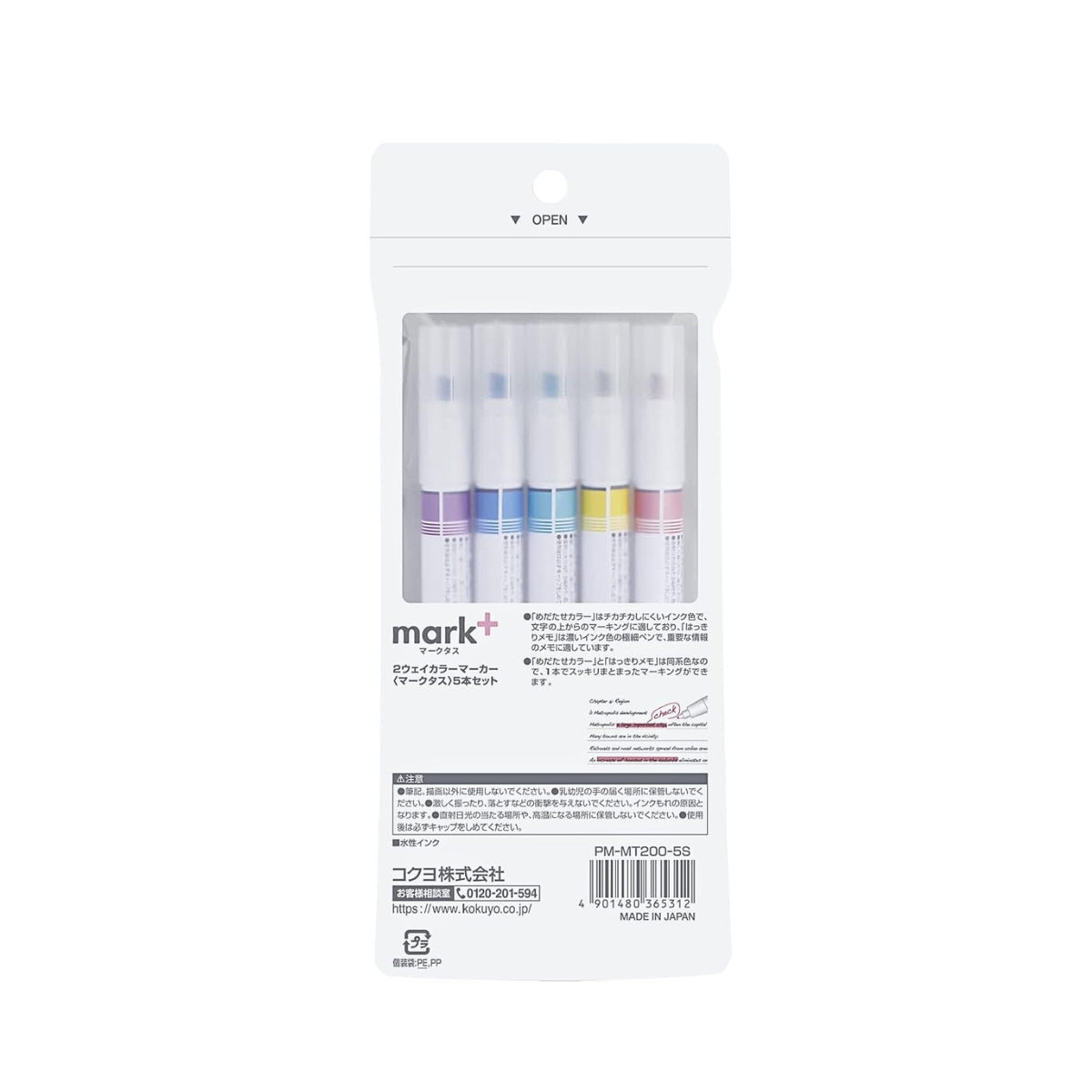 Kokuyo Mark+ 2 Way Colour Marker Pen - Set of 5