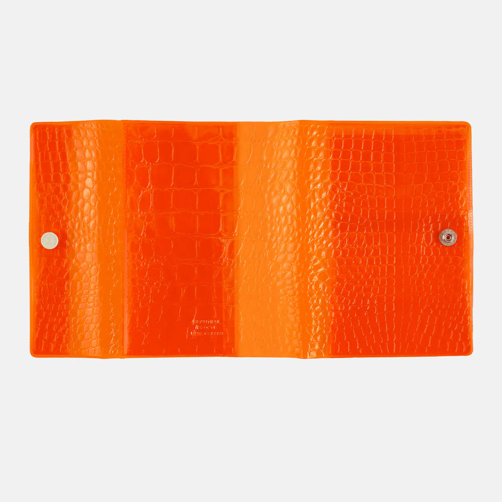Color-blocked in orange and pink, the pocket in pink adds a pop of color and is finished with an embossed shrink leather texture. The two colors and patterns overlap to create depth in the design.