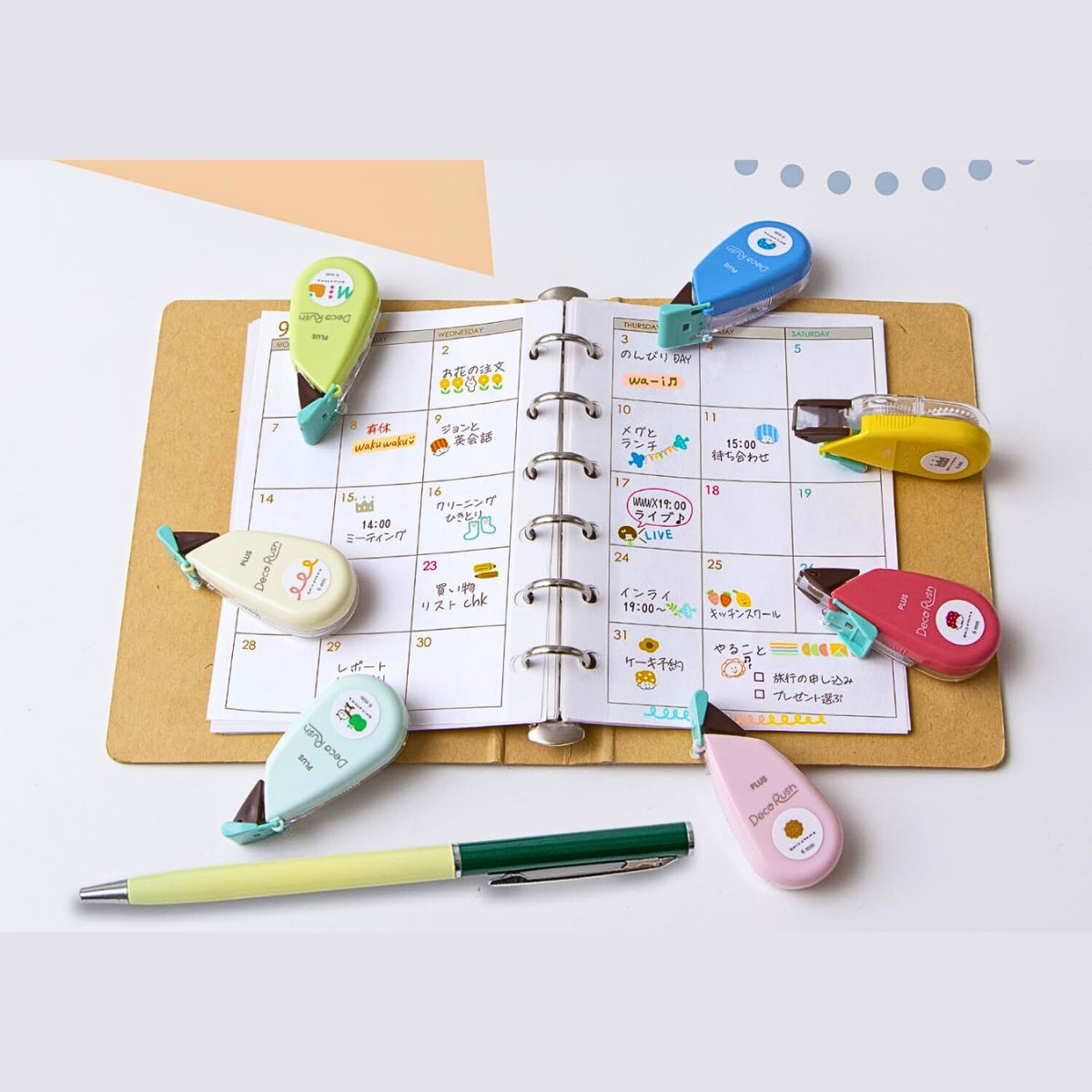 The PLUS Decoration Tape Deco Rush - 6mm is what happens when practicality decides to dress up. Combining “decoration” with “rush”, this clever little tool works just like correction tape — except instead of covering mistakes, it adds charm. With a smooth roll across the page, you can apply neat, colourful patterns in seconds.