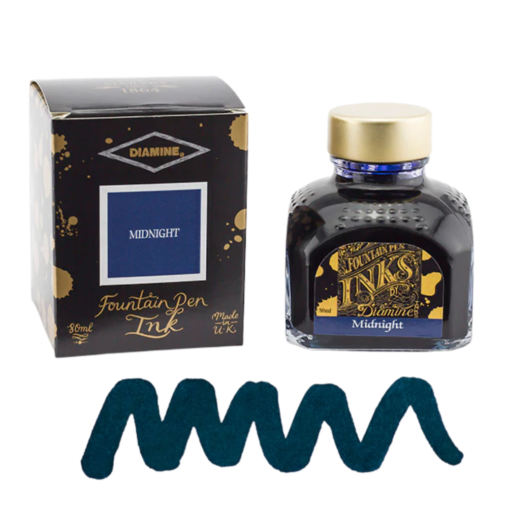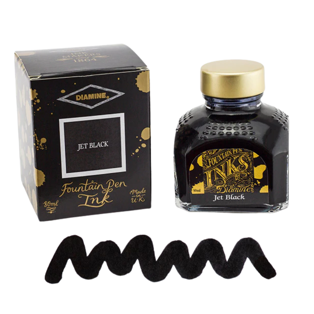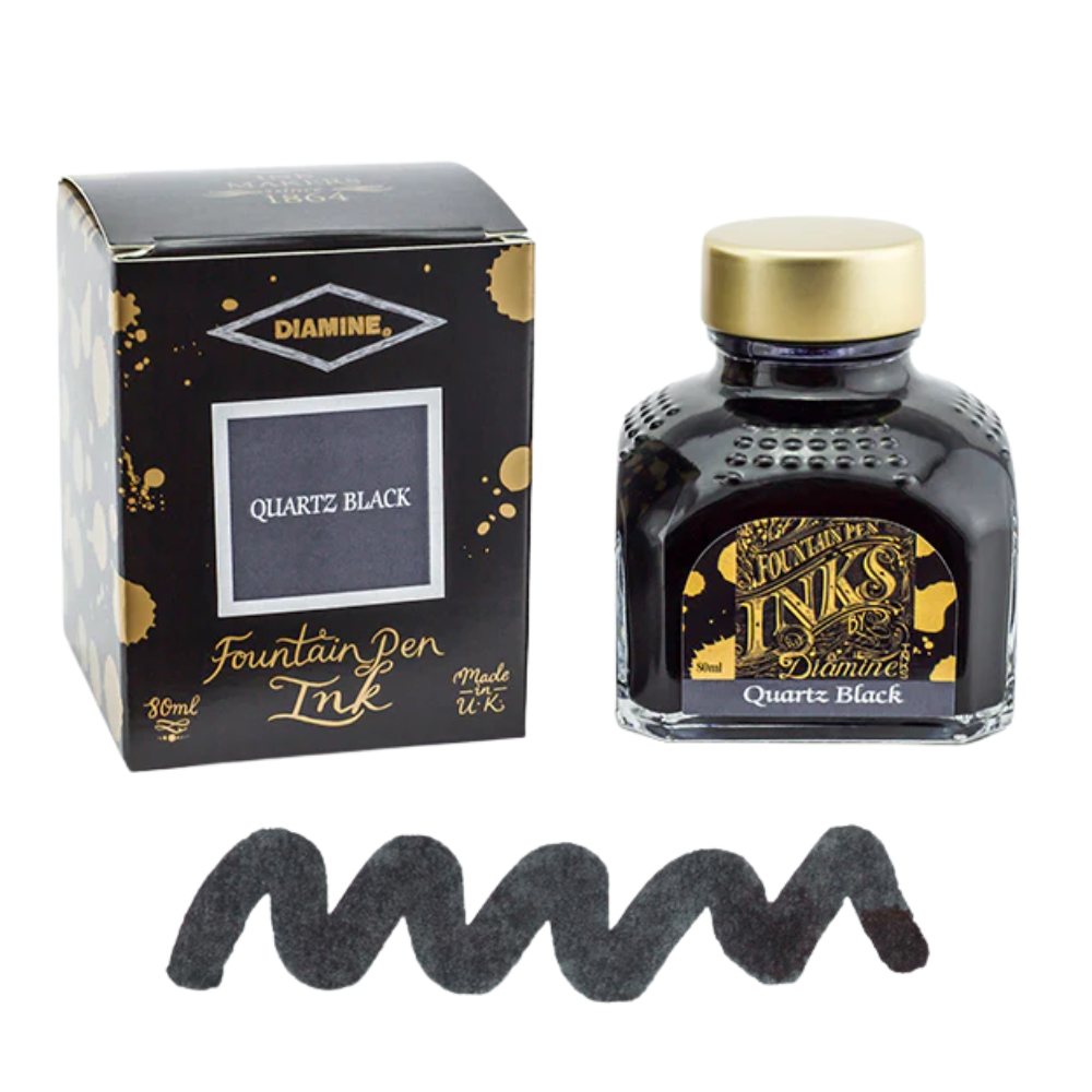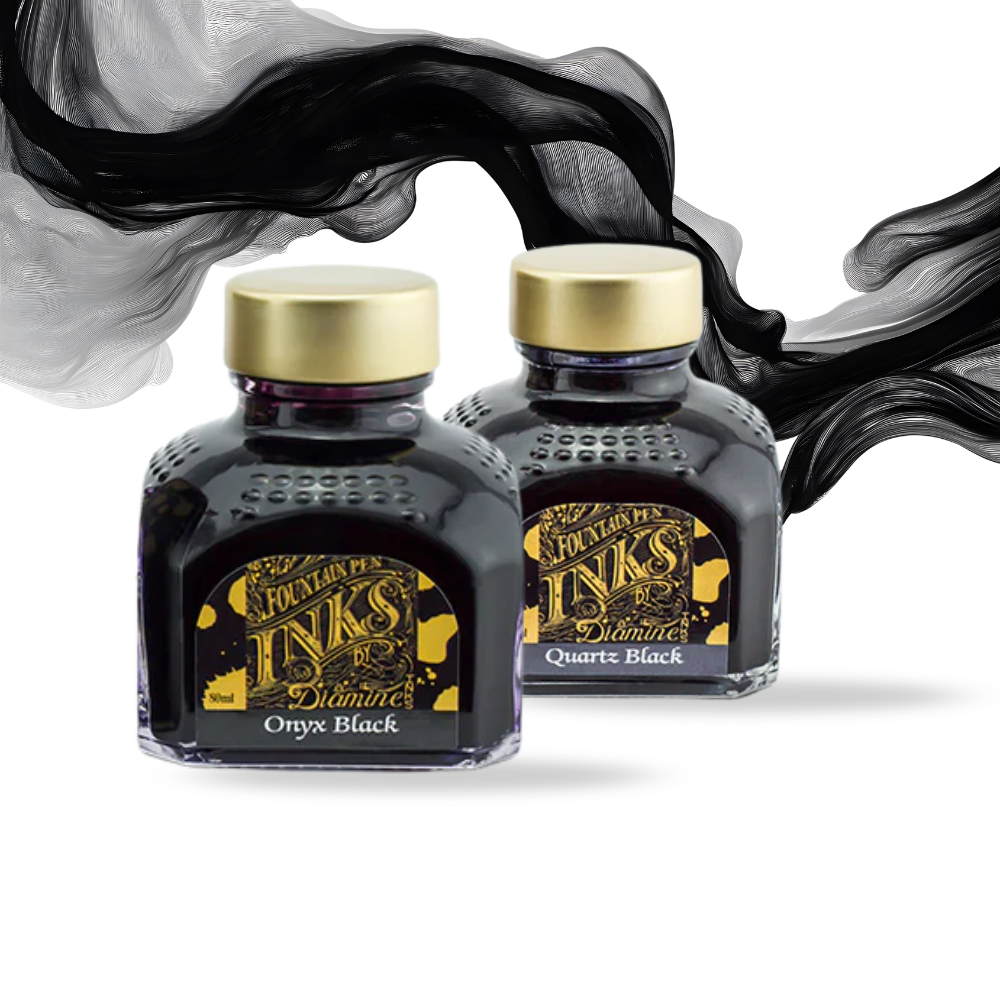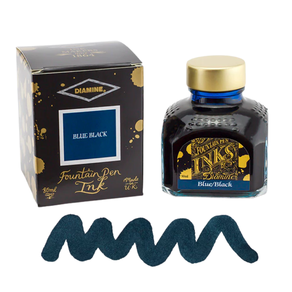 Diamine fountain pen inks offer one of the broadest and most well-loved colour ranges in the fountain pen world. The collection includes dependable everyday shades like black, blue, and blue-black, as well as expressive reds, greens, purples, browns, and softer pastel tones. We've grouped together all Black and Black leaning colours, so it's easier to find the perfect Black ink.