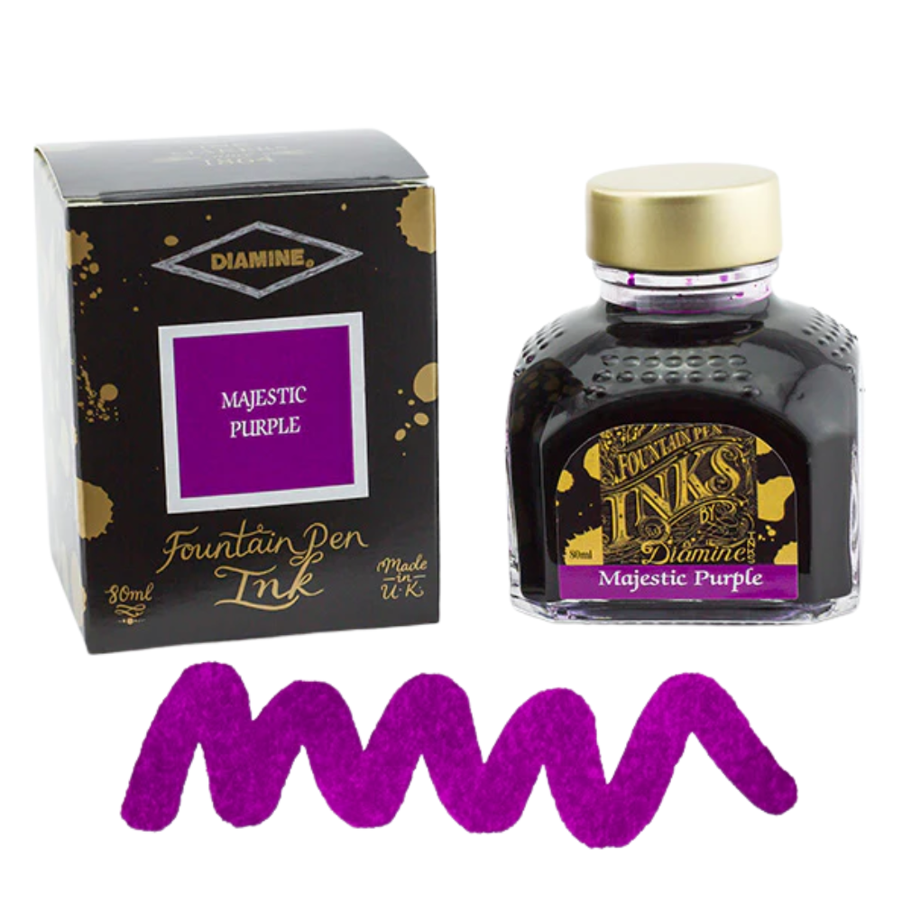 Diamine fountain pen inks offer one of the broadest and most well-loved colour ranges in the fountain pen world. The collection includes dependable everyday shades like black, blue, and blue-black, as well as expressive reds, greens, purples, browns, and softer pastel tones. We've collated all of the Purple and Purple leaning colours for easier browsing.