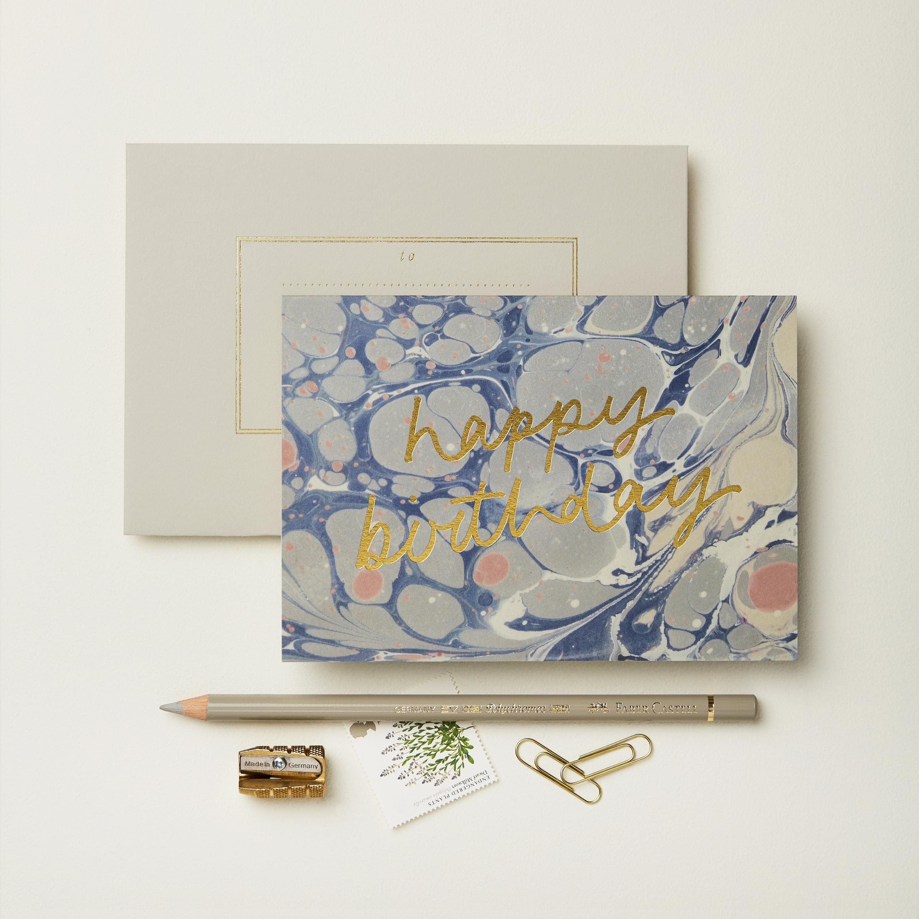 Paired with a matching envelope that features a vintage-inspired golden address label.