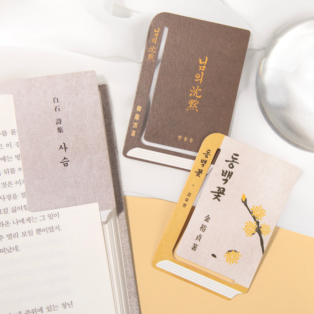 Created by Wearingeul, each design pays quiet homage to Korean literary history, transforming classic book covers into elegant, functional stationery. Lightweight and unobtrusive, the bookmark peeks gently from the page, making it easy to find your place while keeping your book in pristine condition.