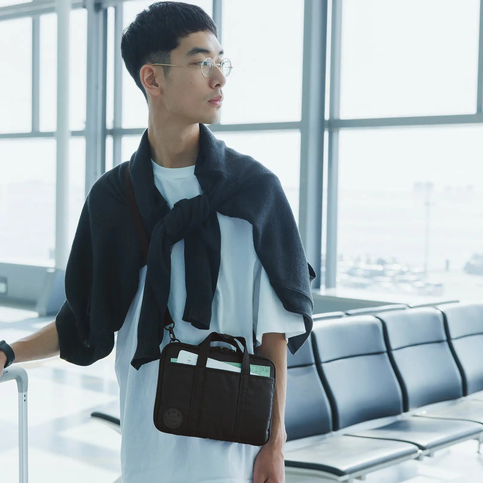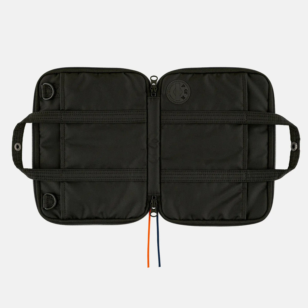 The cover is made from a supple nylon material with Yoshida & Co.'s signature bonding treatment. Key features are the matte texture and soft feel. The circular logo sewn onto the front serves as an accent.