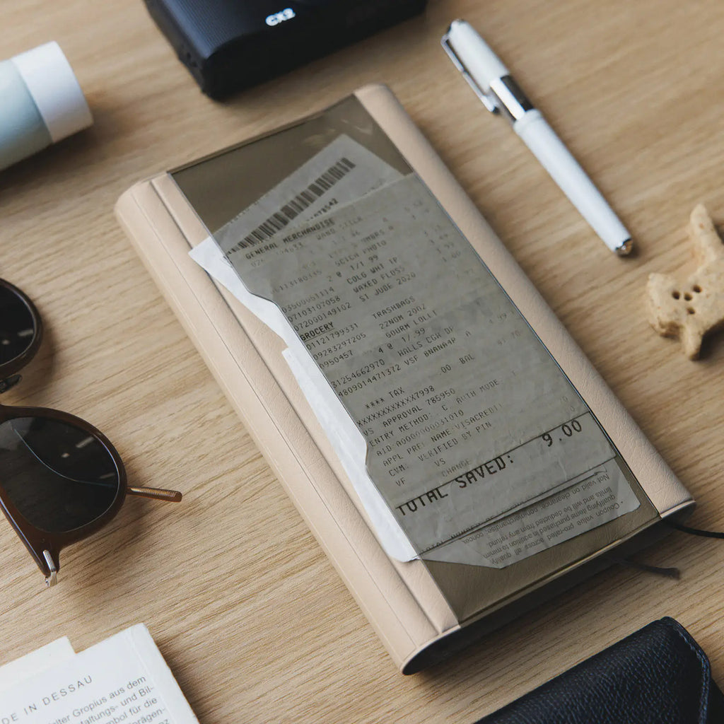 This smart cover features a clear pocket as its star element and is made of soft, lightweight PVC. Its name, “Alettone”—which refers to the part of an aircraft’s wings called an aileron—was inspired by the way the flap of the cover folds neatly over, much like an aileron folds during flight. While the design has a refined and understated color palette that gives it a sense of elegance, the soft PVC material keeps it light and comfortable to carry. The cover opens and closes with a snap button, and its versatile, minimalist style suits any user or setting.