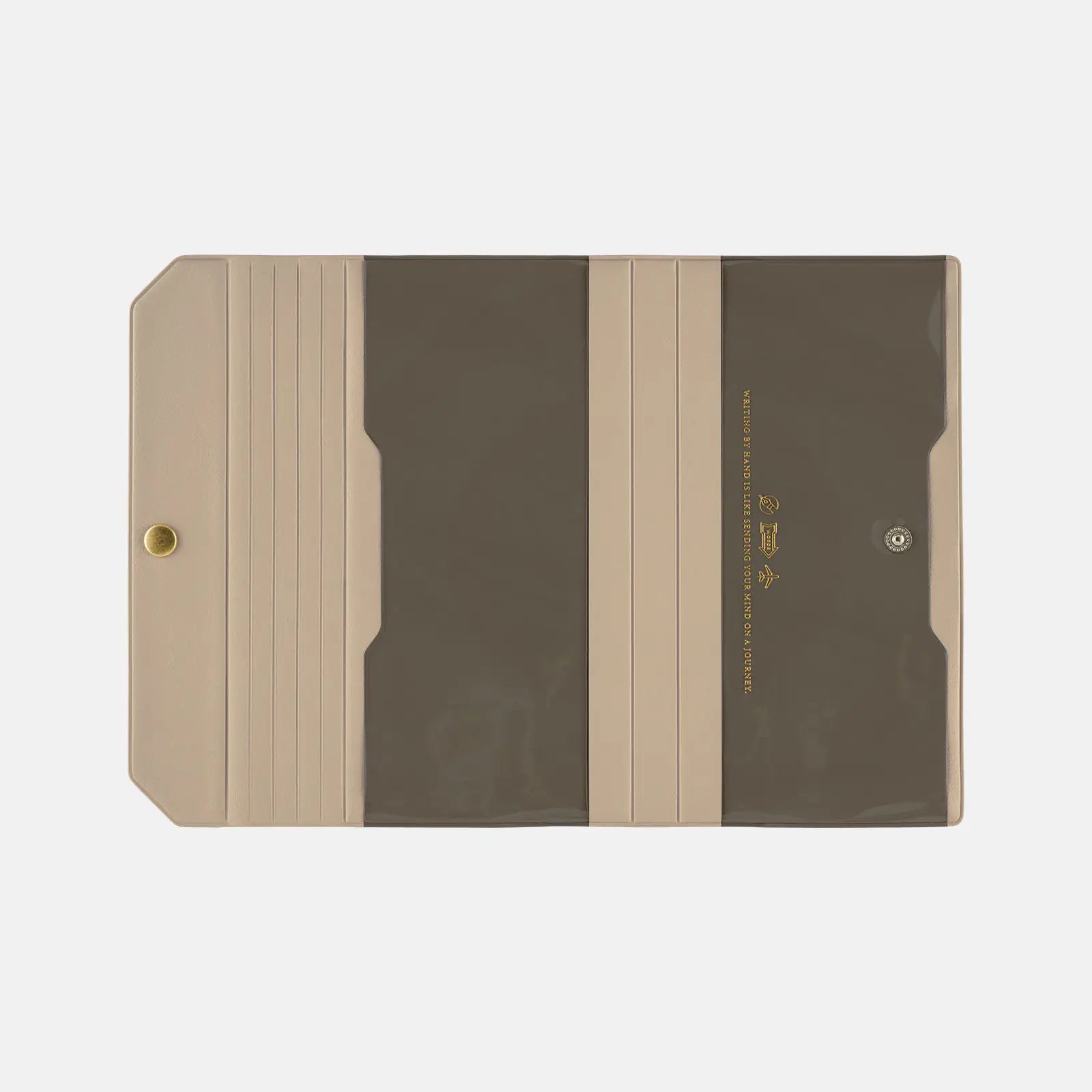Foil-stamped in gold is a quiet message meant to be savored, “Writing by hand is like sending your mind on a journey.” The gray material used for the flap has a subtle texture reminiscent of leather, adding a warm, tactile quality.