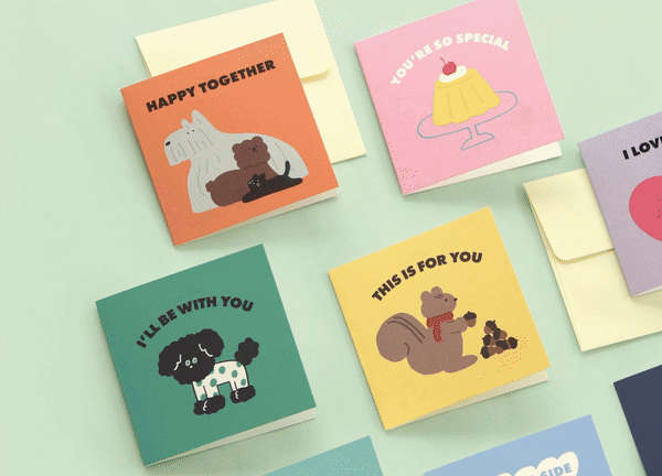 Each box contains 24 cards (eight playful designs, three of each) printed on satisfyingly sturdy 210gsm paper, complete with matching envelopes and designated spaces inside for writing, doodling, or a splash of creative flair. They come boxed and ready—so you can stash them in your drawer, bag, or glove compartment for those spontaneous “just because” messages.
