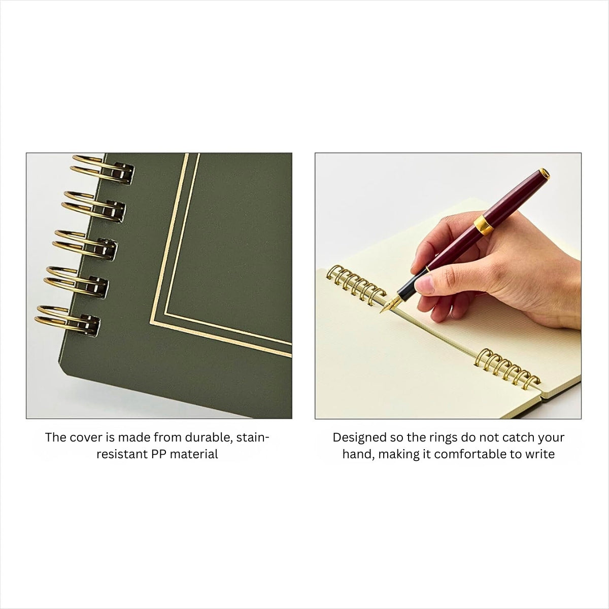 Durable, Comfortable Design: The sturdy PP full-foil cover and easy-open ring binding ensure you write effortlessly, wherever your desk may be.