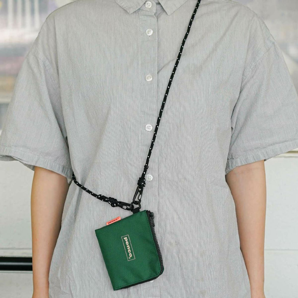 This is a compact wallet with an L-shaped zipper from Penco. The simple design with an inner pocket is recommended for users who want to carry only the bare necessities such as coins and cards. It comes with a D-ring, so you can use it as a neck pouch by attaching a cord strap, smartphone shoulder strap, or neck strap (sold separately). It can also be used as a convenient sub-wallet when travelling.