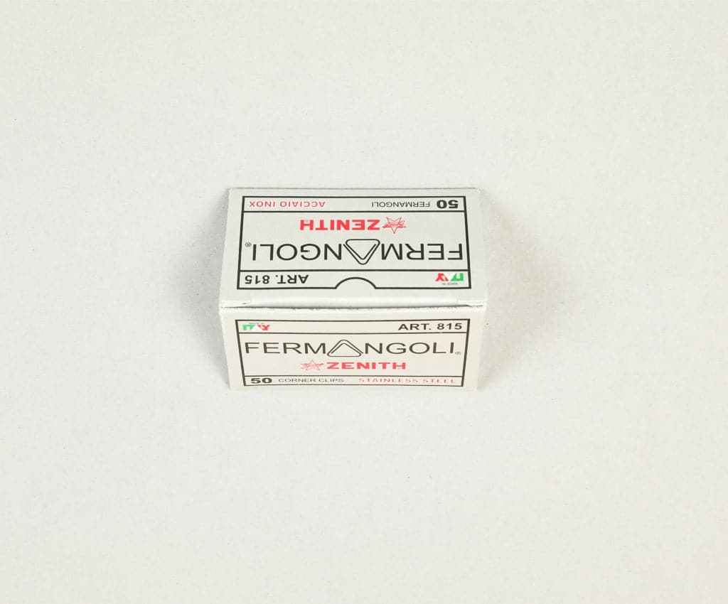 Made from stainless steel, the practical Zenith's 815 corner clips are original and practical. These clips can be used to keep loose papers together as well as to turn pages easily thanks to their unique design. They come in a cute vintage-looking box containing 50 pieces.