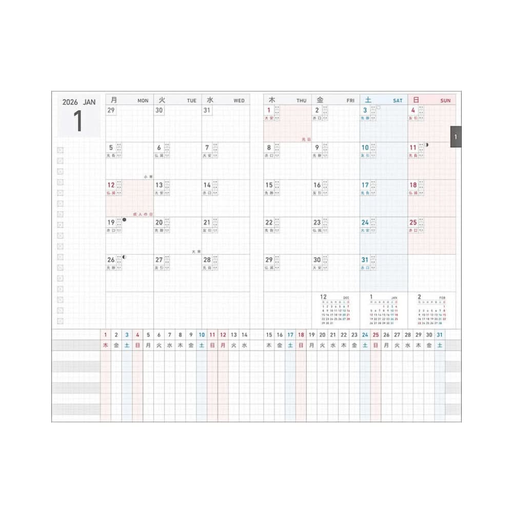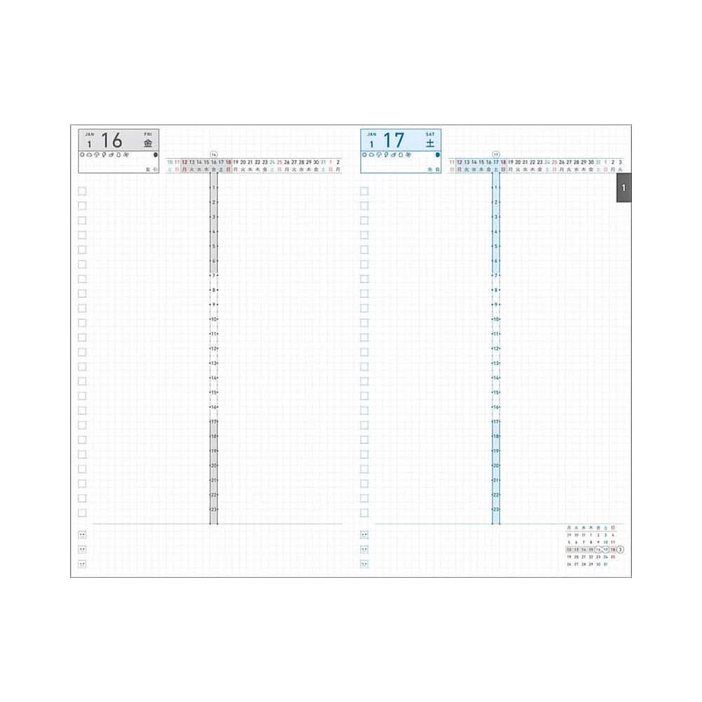 Compact yet comprehensive, the Kokuyo Jibun Techo DAYs Mini 2026 in B6 Slim size brings the much-loved DAYs format into a portable two-volume set. Each daily page features a central 24-hour timeline, making it easy to track two logs side by side—work and personal, planning and journalling, or any combination that suits your lifestyle. The clear header displays the date at a glance, while planning tools such as calendars, habit trackers, and wish lists help you stay organised throughout the year.