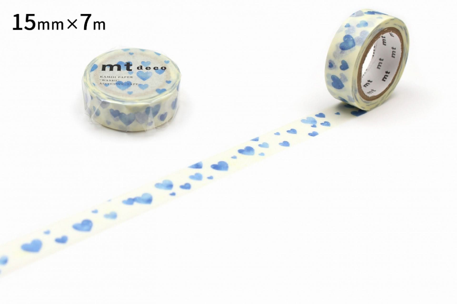 mt 1P Deco Washi Tape - Heart Stamp Blue - 15mm