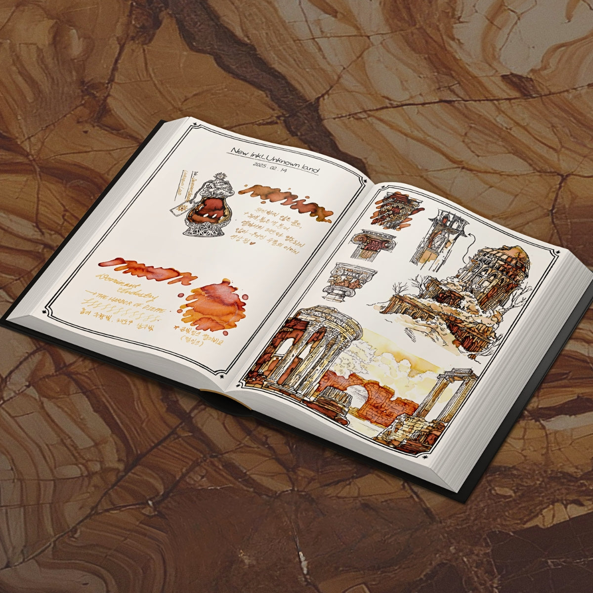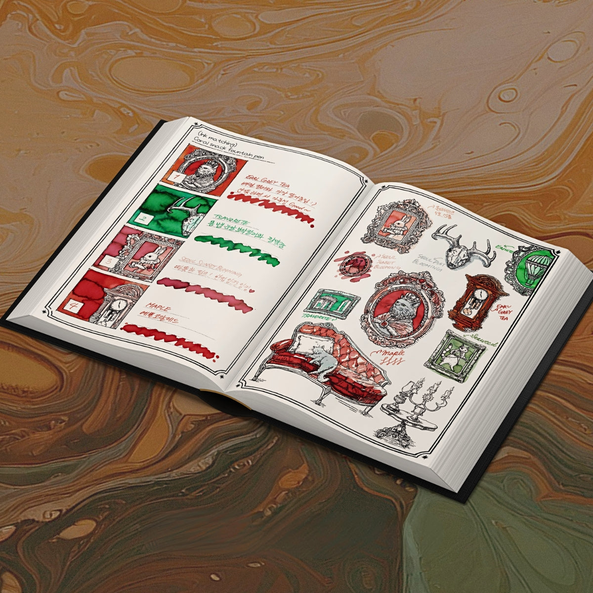 Log of Elixir is the second chapter in The Ink Archiving Book series — a notebook created for explorers of ink who prefer to reflect at leisure rather than rush to conclusions. Vintage trinkets, hints of mysterious alchemy and richly varied illustrations set the tone for a journey that feels part laboratory, part library.