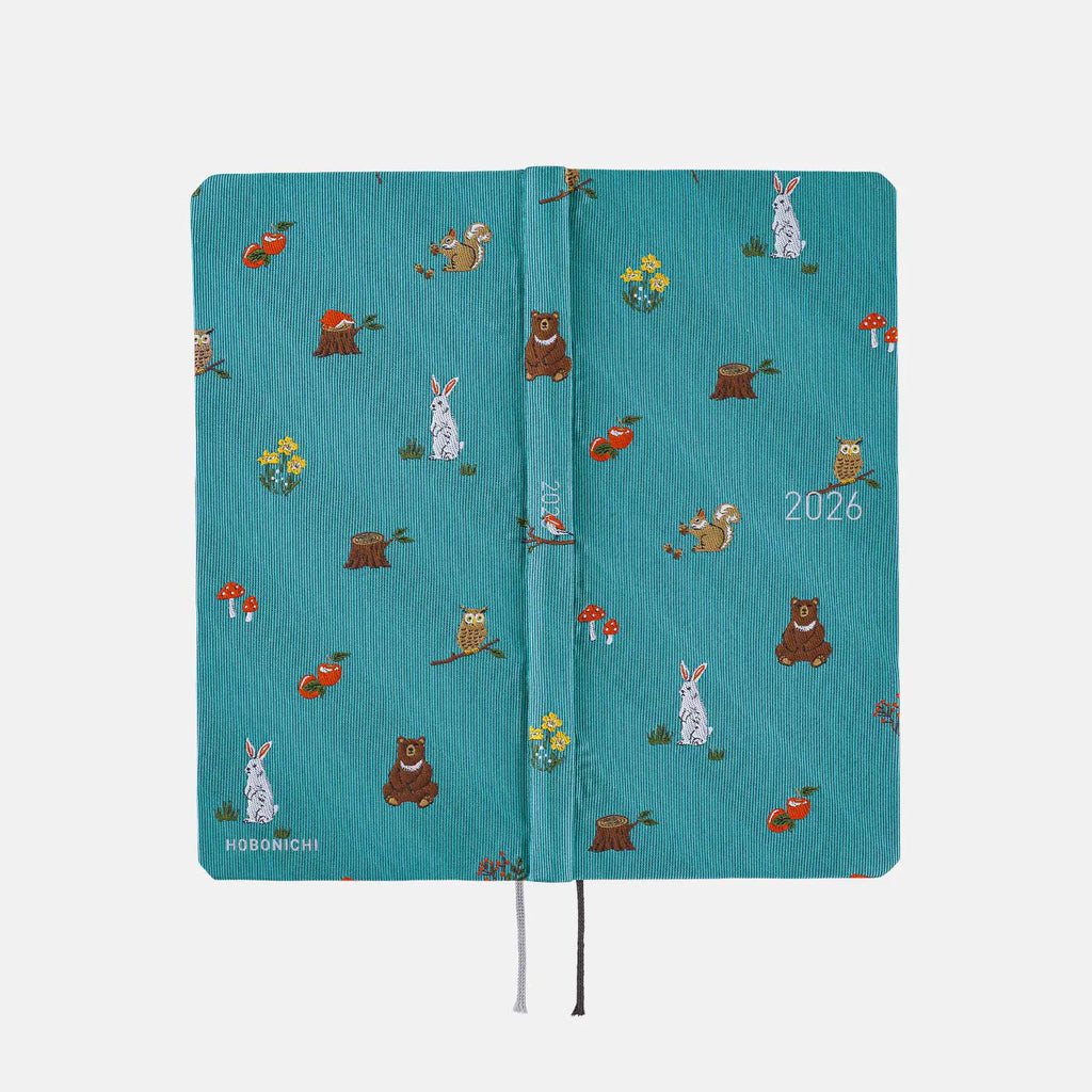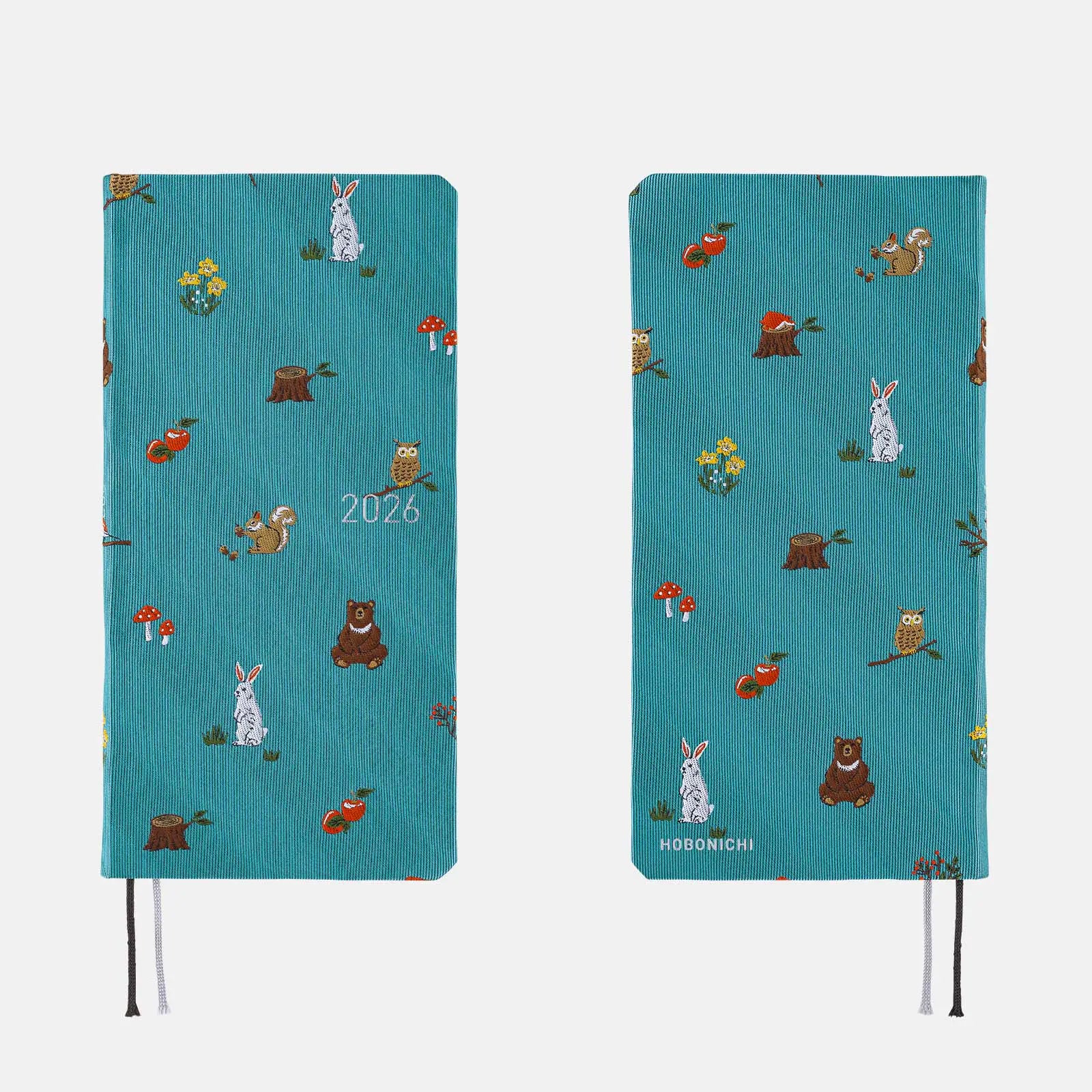 Somewhere in the design, you’ll find a Hobonichi Techo resting on a tree stump. It feels as if someone has paused to take a break in the forest, surrounded by the animals.
