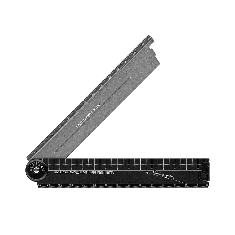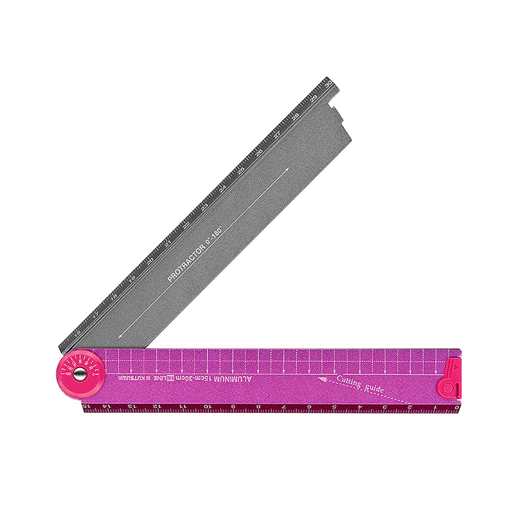 The Kutsuwa HiLine Folding Aluminium Ruler is an award-winning all-in-one tool. It extends into a 30cm ruler, can be used as a protractor and works well for cutting paper.