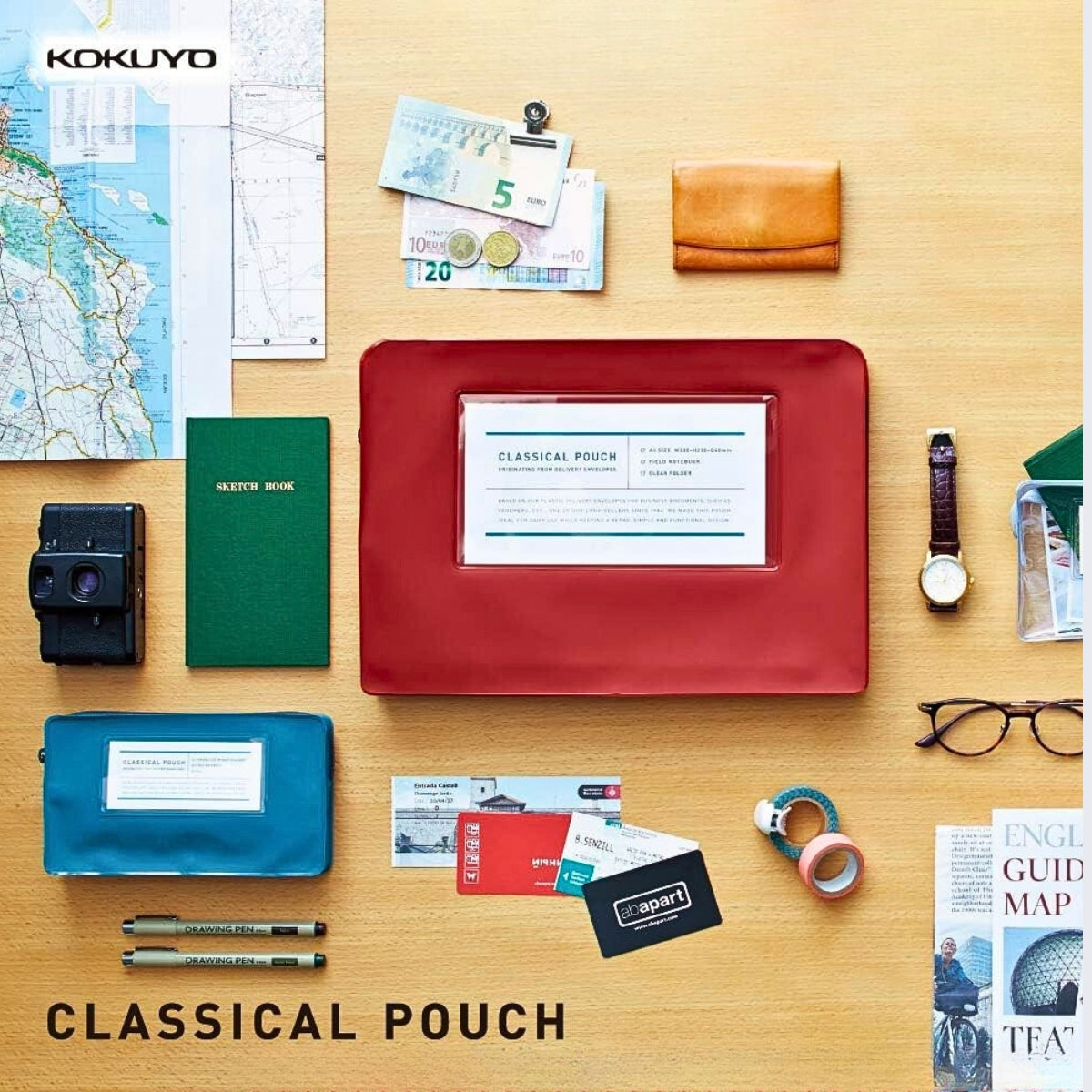 The Kokuyo Classical Pen Pouch is a charming nod to office life of decades past — reimagined for notebooks, masking tape, and modern daily essentials. Inspired by the old document contact cases once found in factories and offices, it carries a distinctly retro air, softened by playful colour choices and thoughtful detailing.