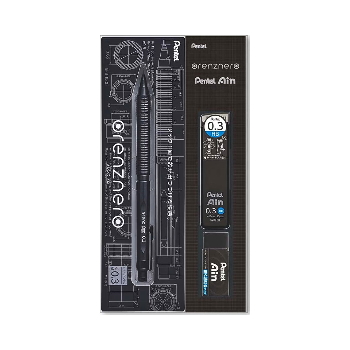 The included Pentel Ain HB lead is specifically designed to pair beautifully with the Orenz Nero nib, offering smooth, consistent lines. The Ain eraser completes the set with clean, precise corrections.