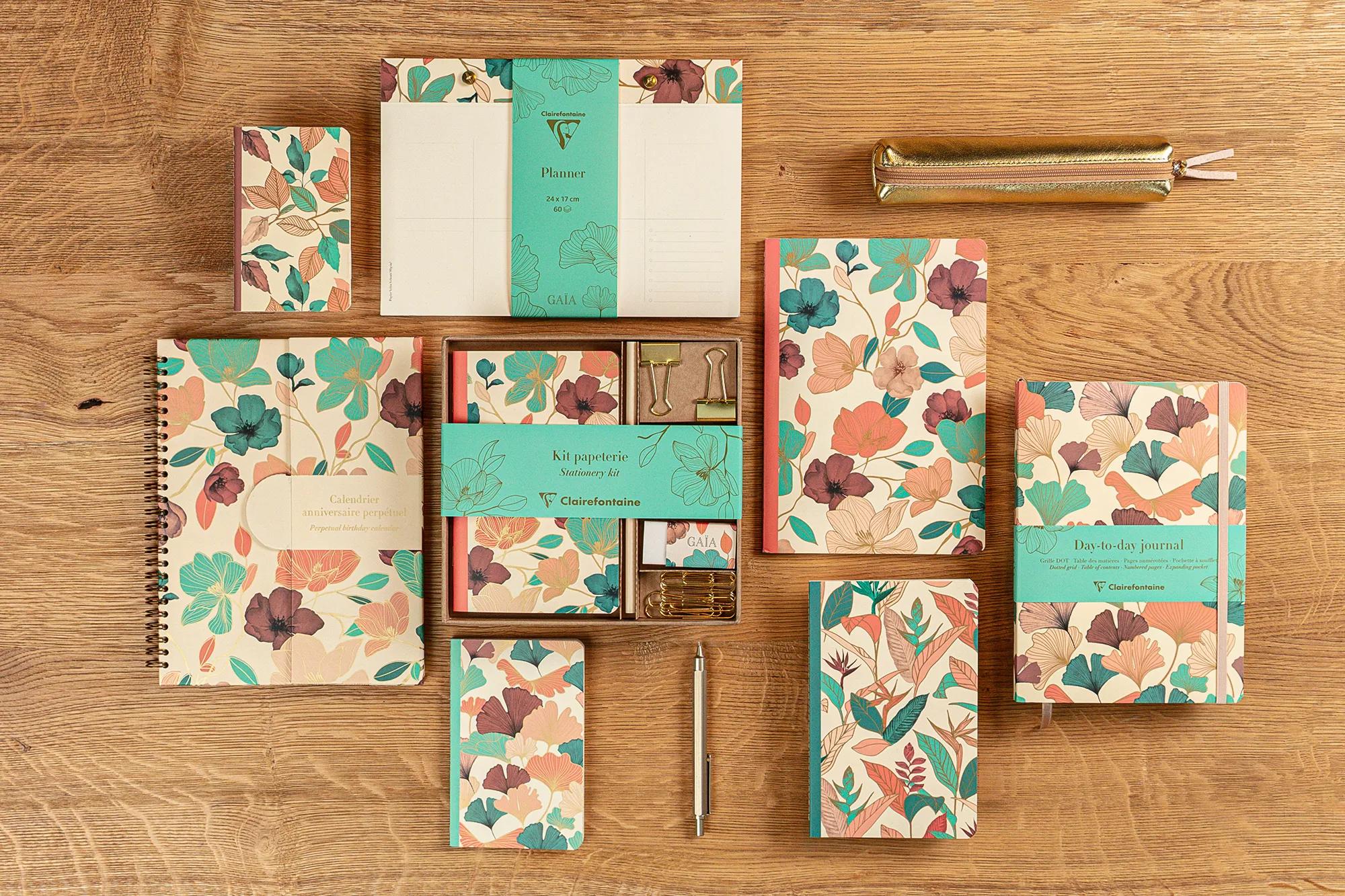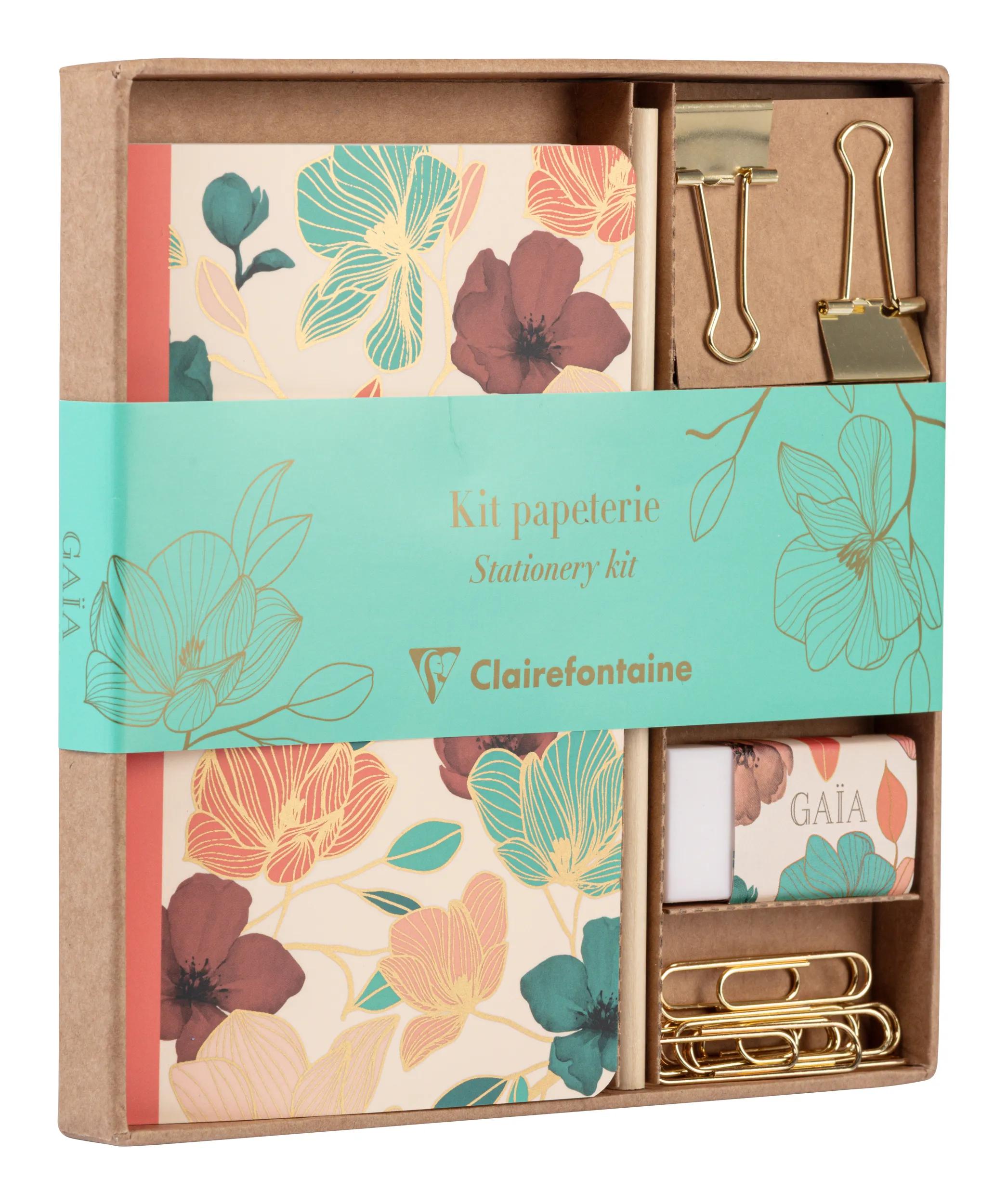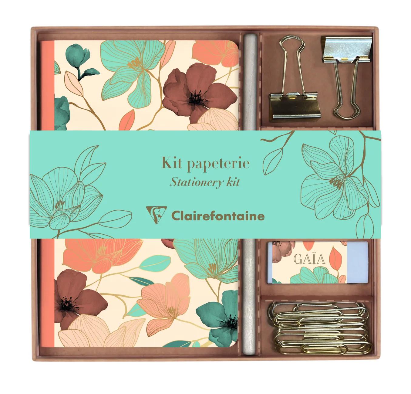 The Clairefontaine Gaïa Beige Stationery Kit brings a touch of quiet elegance to your desk, blending the soft warmth of the Gaïa beige palette with delicate gold screen-printed details. Inspired by the natural grace of the Ginkgo line, the Gaïa collection pairs subtle patterns with Clairefontaine’s unmistakable quality — a rather charming combination for everyday writing.