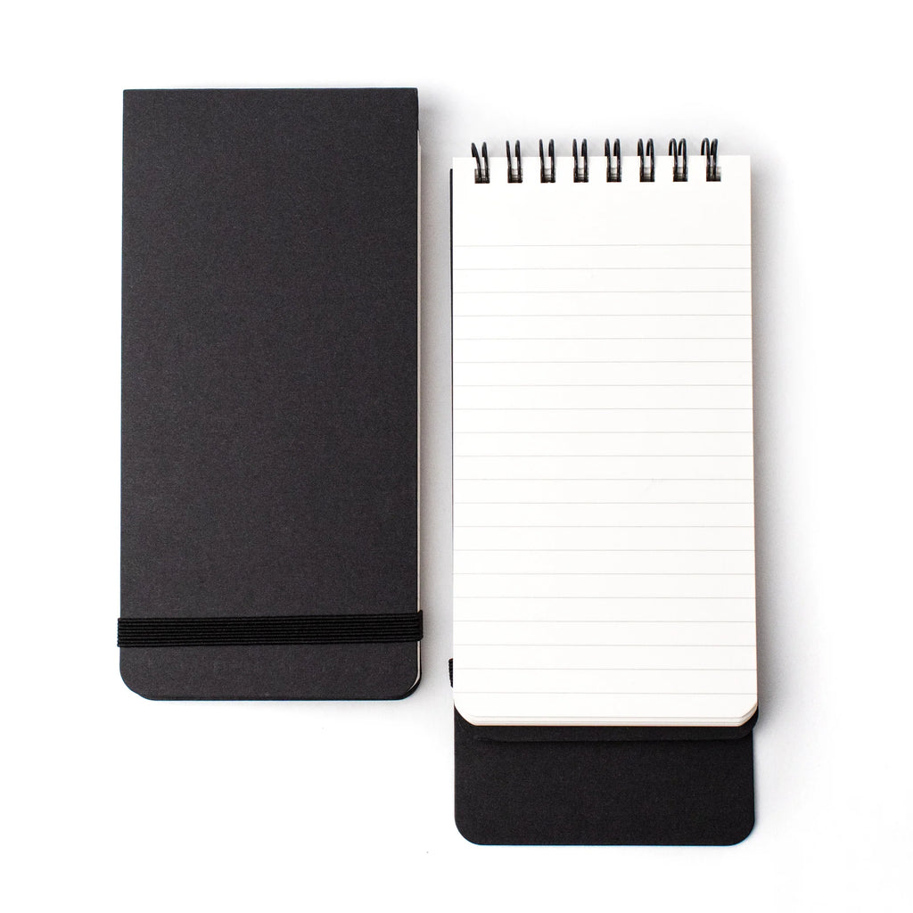 Unlike traditional report pads, the Blackwing Reporter Pad features a sleek black card-stock cover that wraps over the wire binding. It's secured with a sturdy elastic band that not only gives the pad a clean, minimalist look but also ensures the protection of its contents.