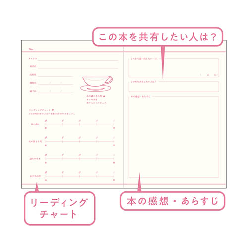 Clear, memorable book tracking: You always keep your reading organised with chart-style overviews and dedicated spreads for each book.