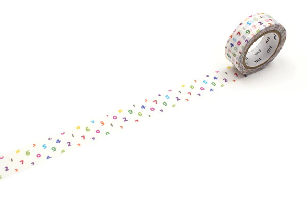 Add a touch of Japan to your crafts and home decor with MT Masking Tape x SOUSOU [Iroiro]. This decorative tape features random numbers in various colors on a white background.