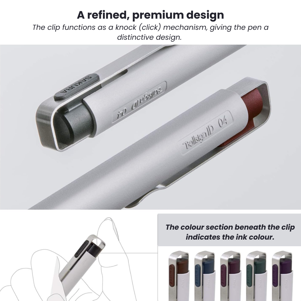 The BallSign iD is a knock-type gel pen designed around subtlety — offering six carefully developed shades of black that let you choose a tone that suits your writing, without ever looking informal.