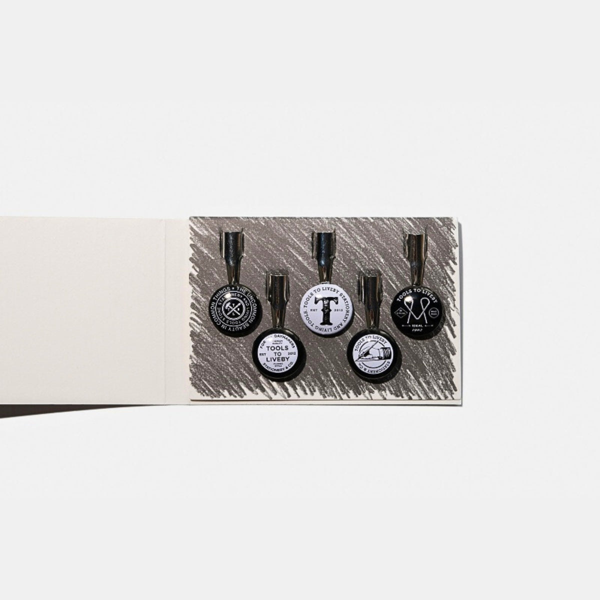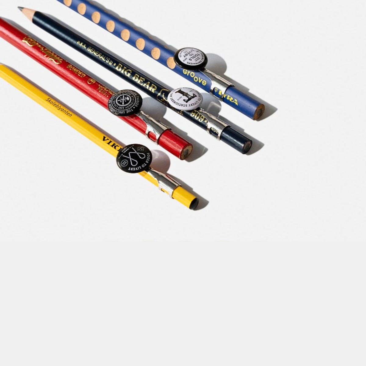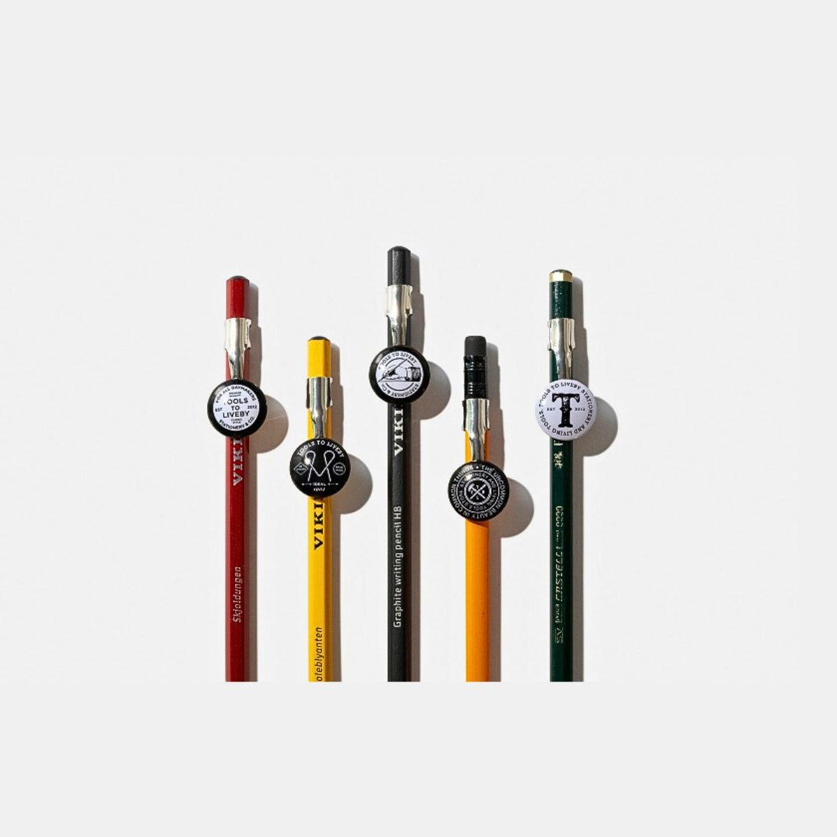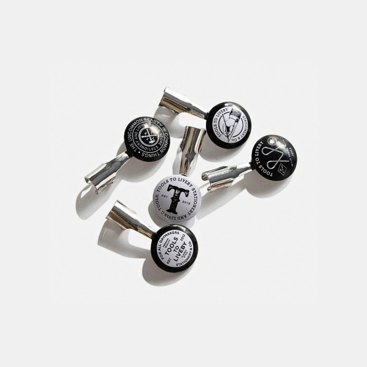 In 1950s America, even a humble pencil clip had a job to do—quietly spreading brand identity while sitting in a shirt pocket. Beverages, factories, unions, and food producers all joined in, turning everyday stationery into miniature messengers. This set of vintage-inspired pencil topper pocket clips is a respectful nod to that era, when practicality and promotion walked hand in hand. Tools To Live By revisits this overlooked chapter of stationery history with five original designs, each carrying retro graphics and short slogans that say more than they first appear to. Clip one onto your pencil and it does two things at once: keeps it close, and adds a little character to the act of thinking on paper.